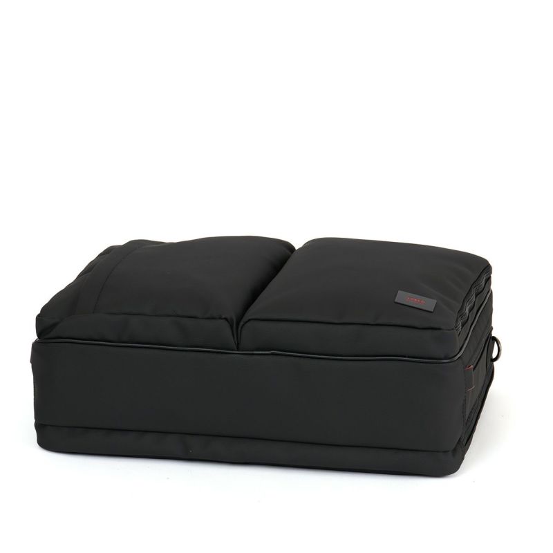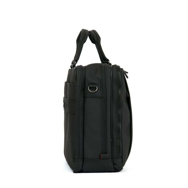 出張にも対応したタケオキクチのA4サイズビジネスバッグ。斜め掛けとしても使える肩紐付きの2WAYバッグです。 従来の出社型「オフィスワーク」と、自宅やシェアオフィスなどオフィスと離れた場所で働く「テレワーク」を組み合わせた働き方が増えた中で柔軟に対応できるよう、13.3インチノートパソコンの持ち運びに対応しています。 キャリーオン機能付きで、キャリーバーに固定するベルトが装備されています。泊りでの出張にも最適のビジネスバッグです。