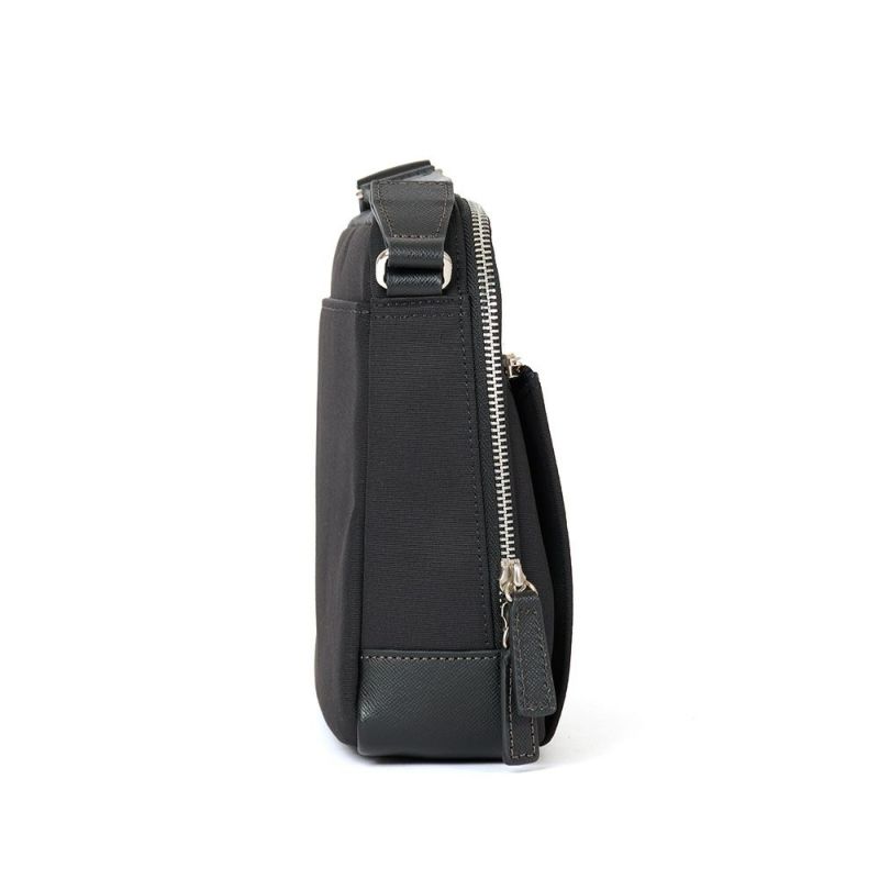 前面にはササマチ(片方のみマチがある)ポケットがあり、ファスナーが際立ち、視認性や開閉動作に優れた仕様です。またロック式のスライダーを使用して安全性を高めています。さらに内側にオープンポケットがございます。