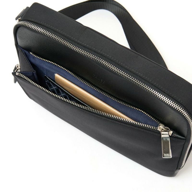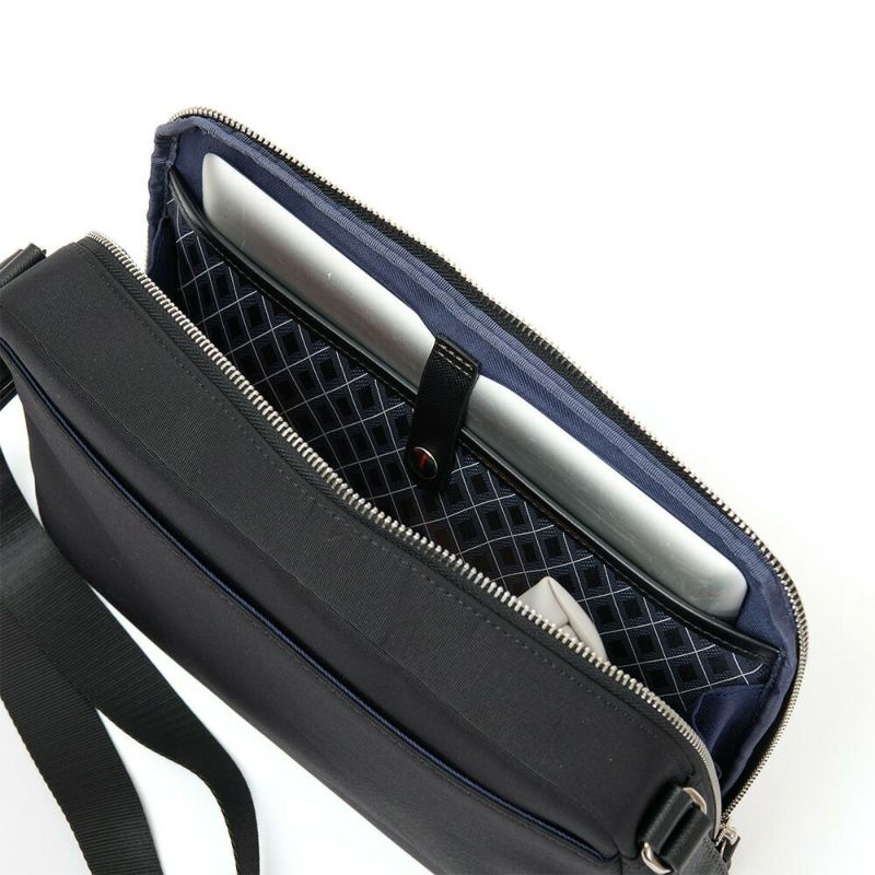メインルームは長財布や横向きペットボトルがすっぽりと入るサイズ感。収納には、小物を整理できるようオープンポケットx2・ペン差しx2・ファスナーポケットと、衝撃から守るタブレット用クッションポケットがございます。
