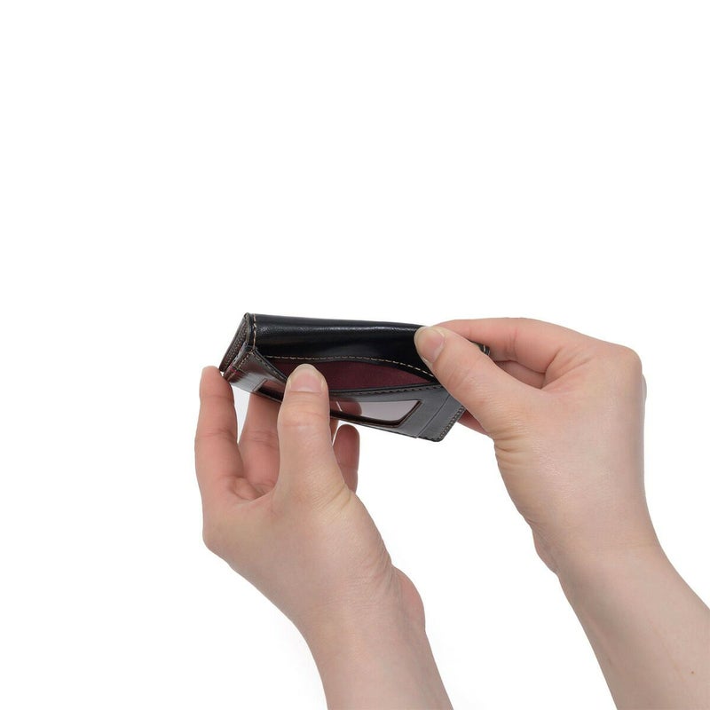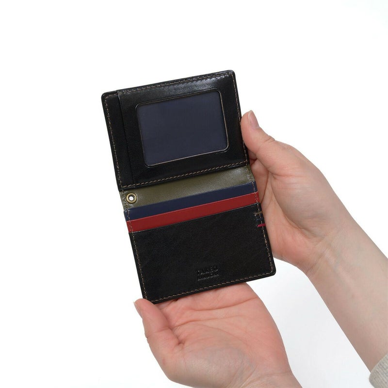 ベジタブルタンニンでなめされたイタリア産ショルダーを使用したカジュアルウォレットシリーズ。ショルダー独特の深い“トラ”がポイントで、ピット層にじっくりと漬け込む製法でなめし、さらにプレスをかけているため革本来のツヤ感が楽しめます。革の質感を重視したシンプルなフェイスとカード段に配色を施したカラフルな内装とのギャップが魅力。また、配色のカラーを使用したかがりステッチもさりげないポイントです。