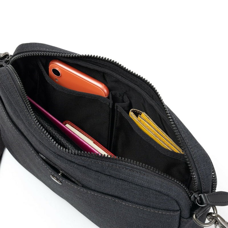タケオキクチのカジュアルの中に大人なデザインを感じさせるミニショルダーバッグ。本体素材は杢調ポリエステルを使用し上品な雰囲気になっています。また内装ポケットも豊富で普段使いから旅行まで幅広く活躍するバッグです。
