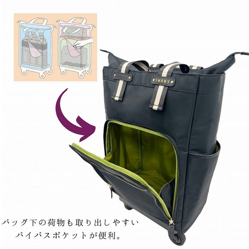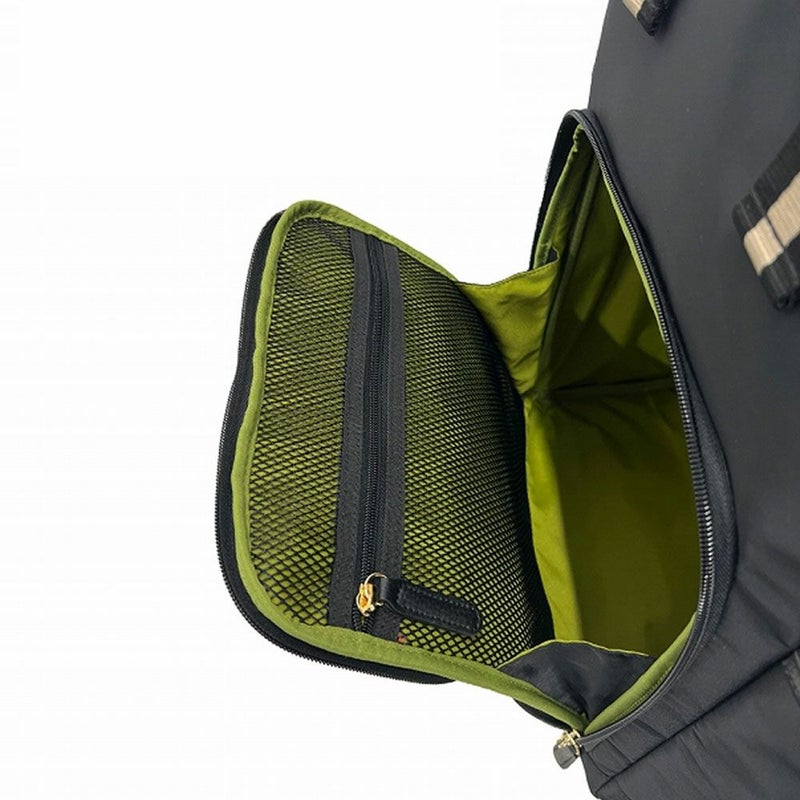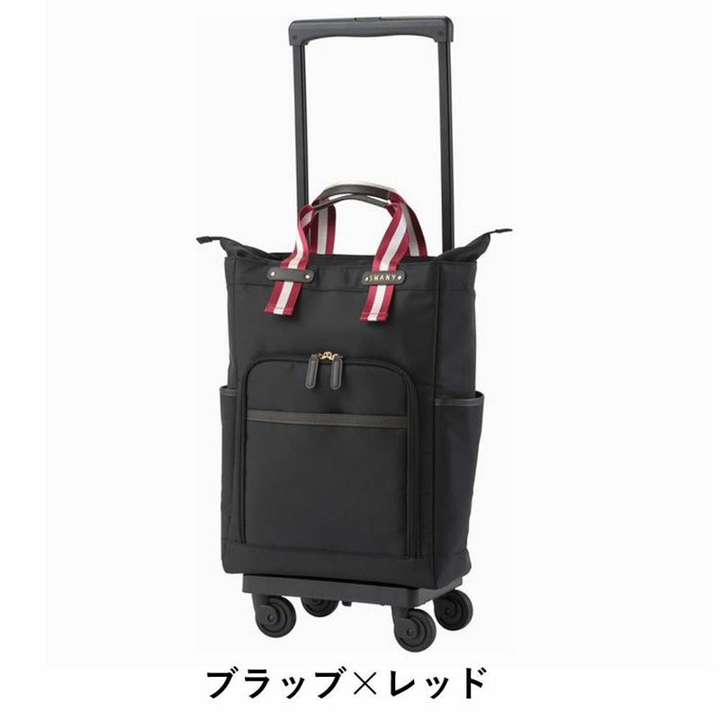 カジュアルタイプの座面付きが新登場。 バッグ内装はデュアルポケット構造になっておりますので、荷物を分けて収納したい場合は内装のファスナーを閉じて 上下に荷物を分けて収納できます。 前面ポケットはバイパスポケットになっていますので、取り出しにくいバッグ下の荷物も取り出しやすい構造です。 持ち手はストライプテープを使用し、アクティブ感を演出。 カジュアルな装いでのご旅行やお買い物にうってつけのキャリーです。
