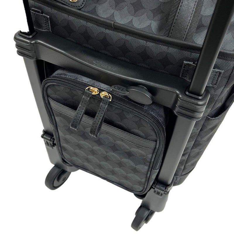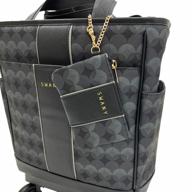「リンゴ」はエスペラント語で「輪」を意味し、デザインにそのエッセンスが込められています。 サークル柄のプリント地に合皮を組み合わせたシンプルで上品なデザインが特徴です。 カラーは、どんなスタイルにも合わせやすいブラックと、ぬくもりを感じさせるベージュの2色をご用意しました。 取り外し可能な同デザインのポーチは、小物を収納したり、チャームとしてデザイン性を引き立てたりとさまざまな使い方が可能です。 もちろん、スワニーバッグならではの4輪ストッパーやT2キャスターなどの便利な機能も充実しており、日常の様々なシーンで活躍します。