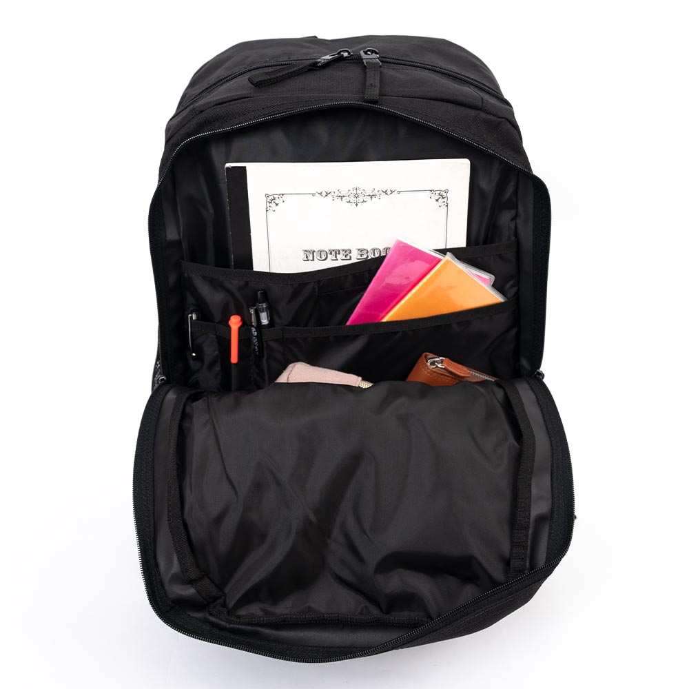 最大32L・B4サイズまで収納可能で、通学から普段使いにも最適なアイテムです。メインルームが2か所に分かれている2気室デザインとなっており、一方に教科書、もう一方に着替えやお弁当を収納するなど、用途に応じて使い分けることができます。