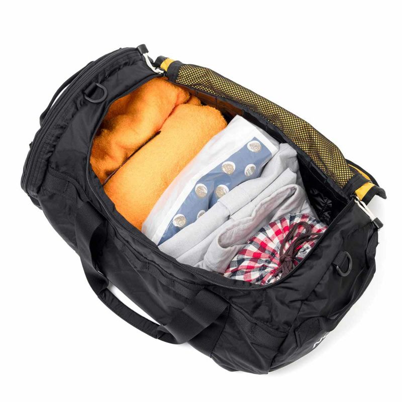 D型に大きく開く30L容量のメインコンパートメント。取り外し可能なショルダーストラップと、便利なグラブハンドルを両サイドに装備。保管や携行に便利なポケッタブル仕様です。