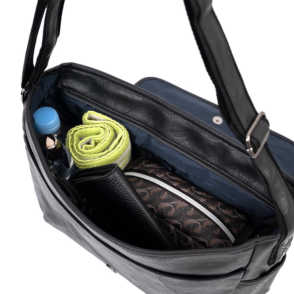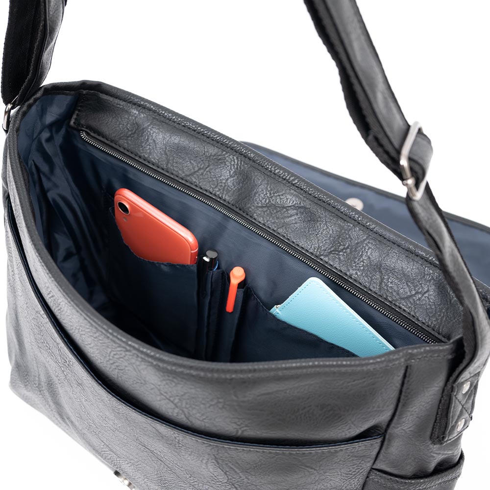 A4サイズまで収納可能な大きめショルダーバッグ。13インチ程度のパソコンやA4ノート、500mlペットボトルも収納でき、プライベートはもちろん、通学・通勤でも活躍できるアイテムです。