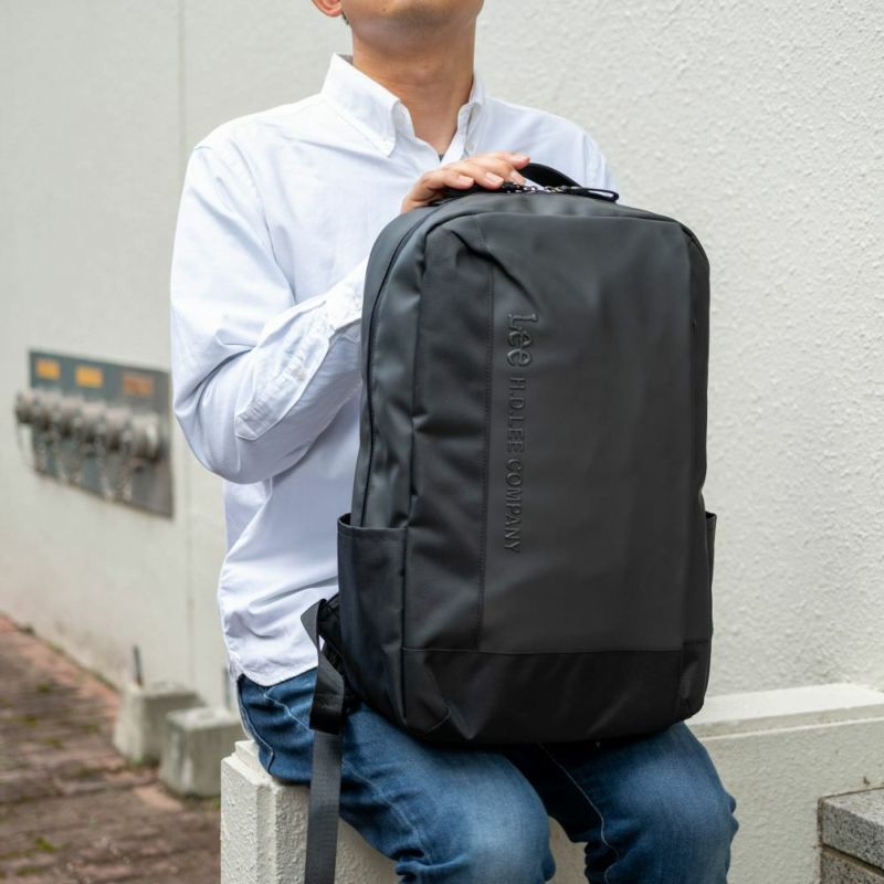 Leeの光沢がある合皮素材のリュック。通学・通勤のほか、普段使いにも最適なアイテムです。 メインルームにはパソコンを入れるクッションポケットがあります。メインルームにはペン差しなどもあり使い勝手がよくなっています。