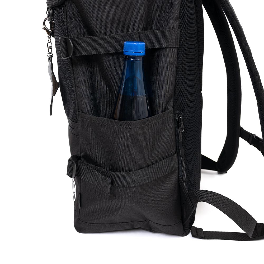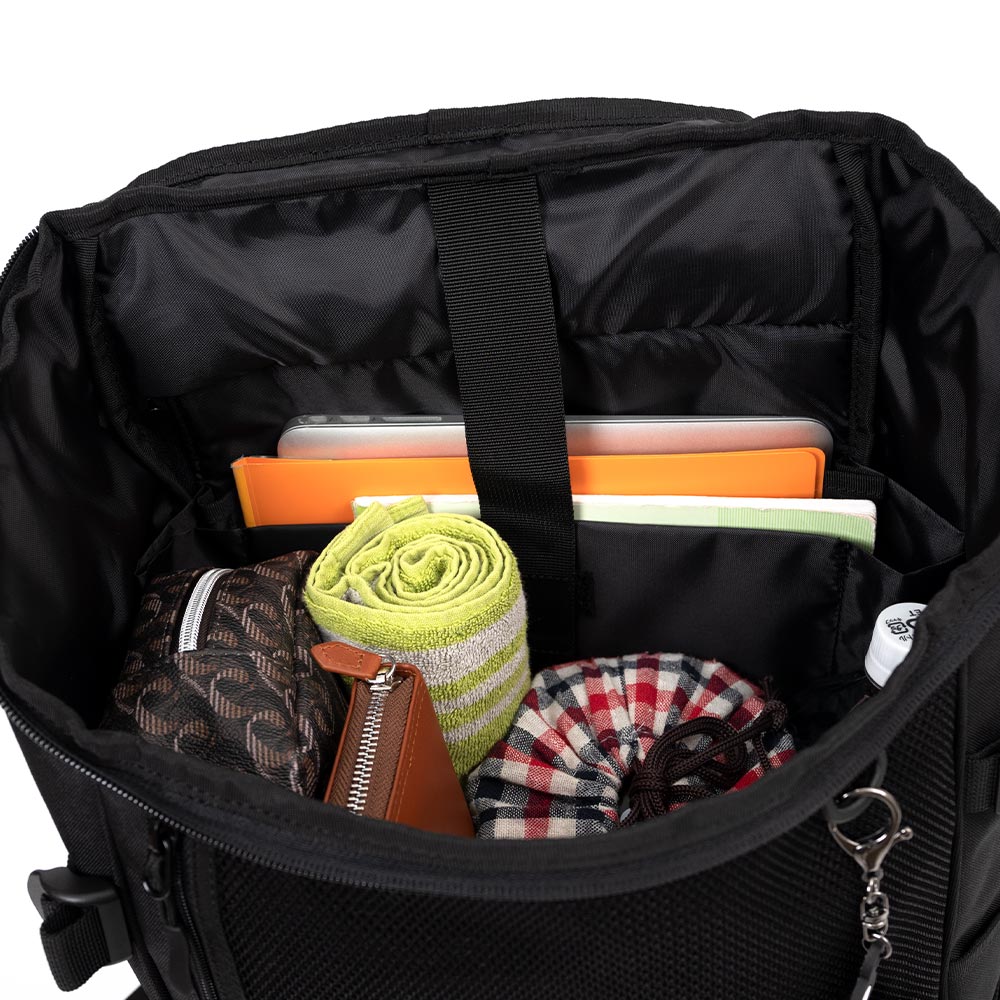大容量リュックの通勤、通学、タウンと幅広く使えるリュックです。 太く厚手のショルダーストラップで肩への負担軽減。反射するリフレクター付。 Dカンがサイドポケット2コ、ショルダーに2コ、フロントに1コ、背面ポケットに1コ 合計6か所ありキーホルダーなど着けれる仕様です。