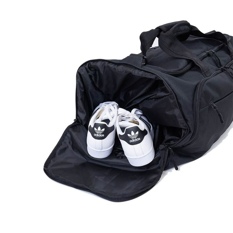 人気ブランド「KANGOL」のボストンバッグ。カンガルーのロゴが付いた面とボックスロゴが付いた面の双方が楽しめるデザインになっています。 50Lの大容量サイズで、2泊~4泊程度の修学旅行や林間学校、部活、旅行などに活躍します。 内外の小物ポケットが豊富なほか、側面にはシューズボックスを装備しています。