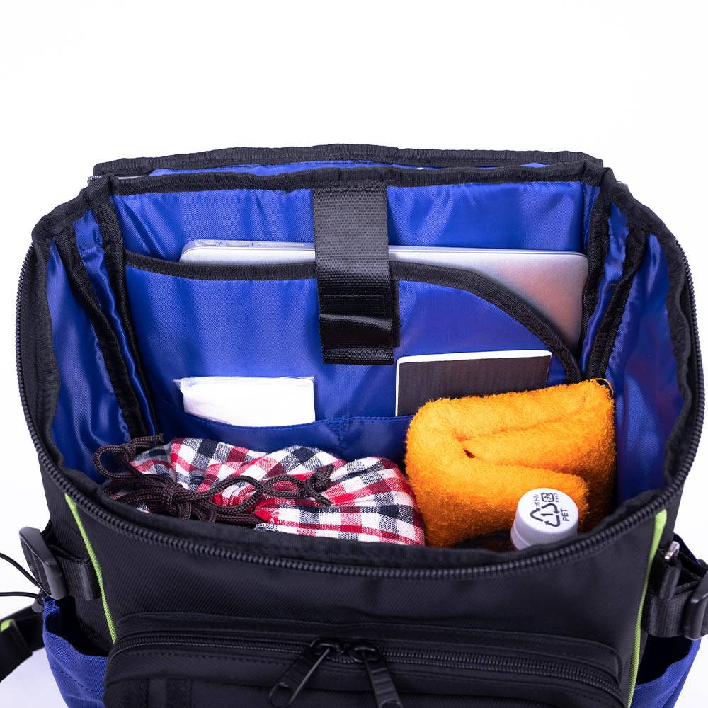 コンパクトになりながらも、底マチ拡張機能により容量は最大約30Lまで拡張可能。 通学や通勤はもちろん、1泊程度の出張や旅行にも対応できる実用性を備えています。