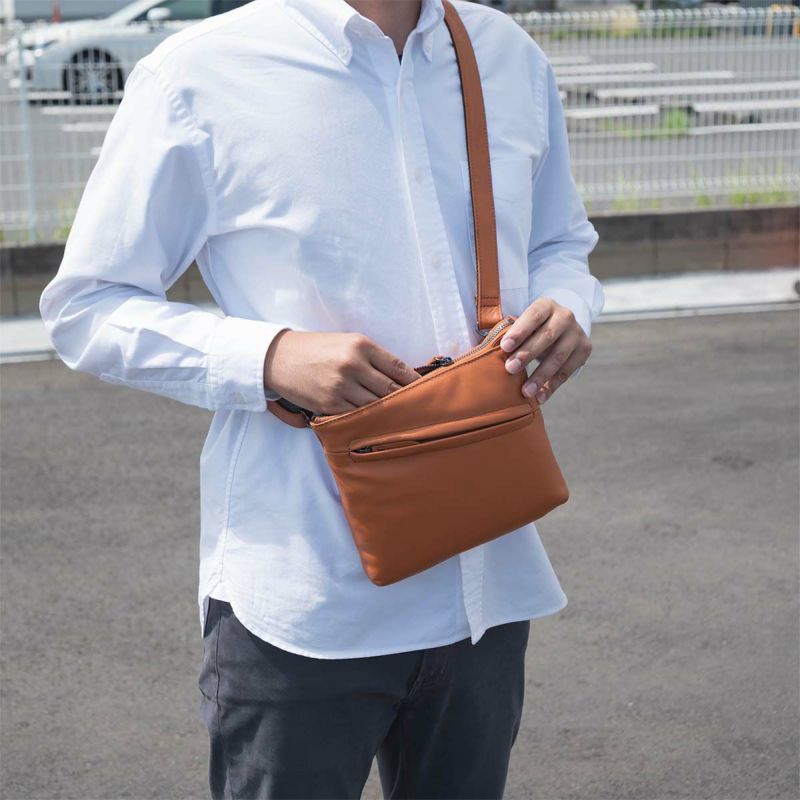 小さめサイズのショルダーバッグ。折りたたみ財布やスマホなど、ちょっとした外出に必要な荷物を収納するのに最適なアイテムです。