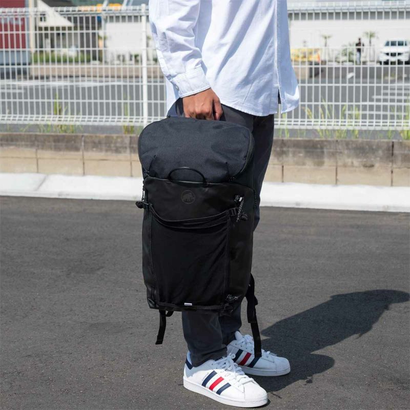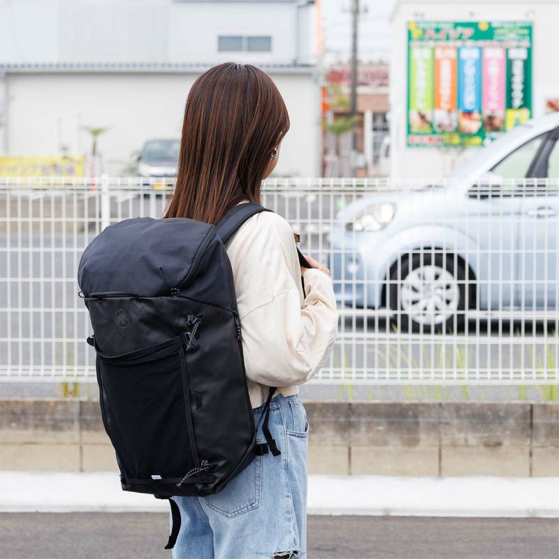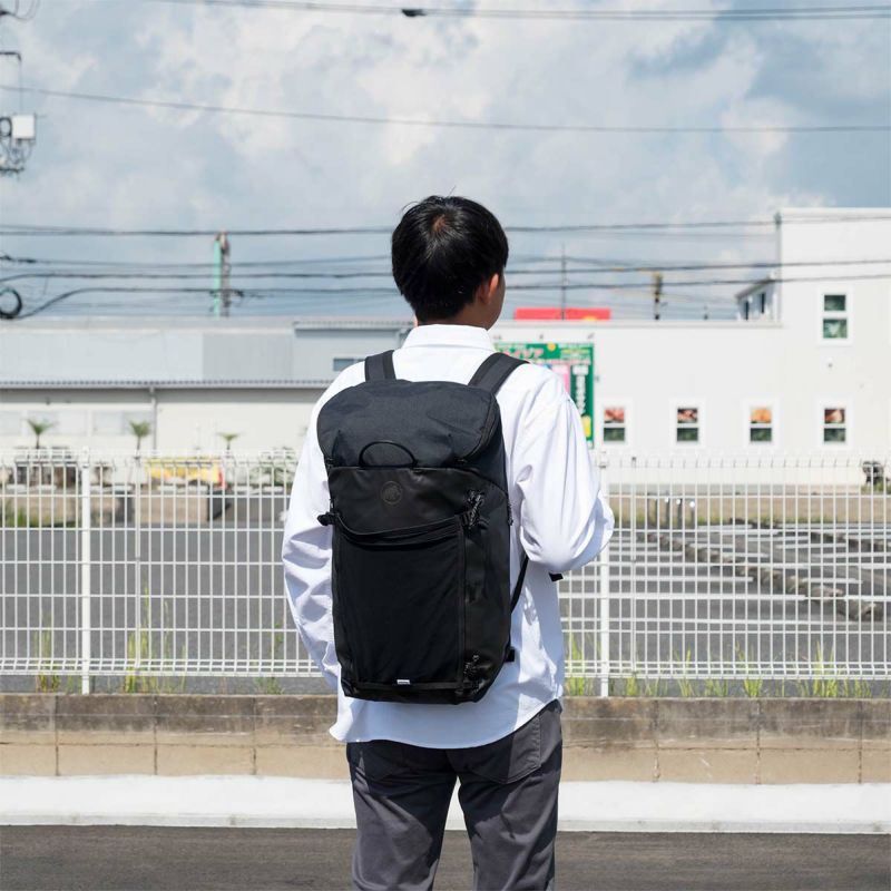 ラウンドファスナー式のワイドな開口部が荷物をしっかり保護。頼りになる容量。 ラウンドファスナー式のワイドな開口部により、上からの物の出し入れがしやすい仕様に。さらに、サイドのファスナーから奥のアイテムにもアクセス可能。MAMMUT最高性能を誇るギアへのオマージュを込めた、通勤や日帰りハイキングなど幅広いシーンに対応するバックパックです。
