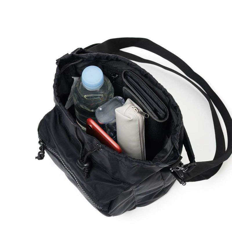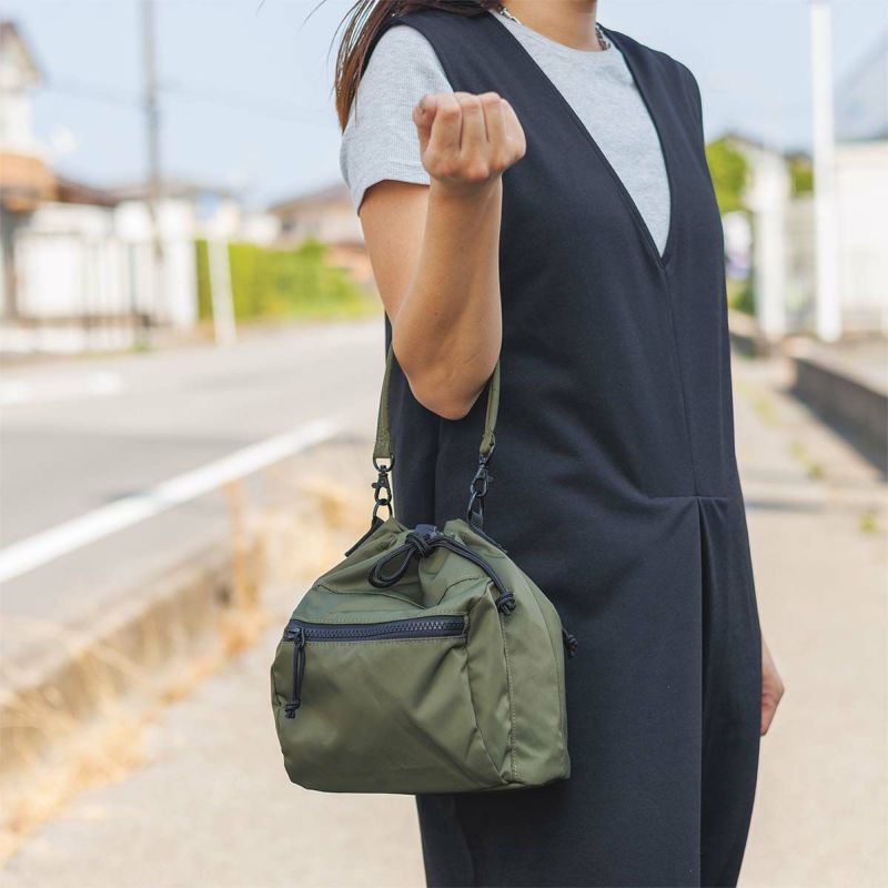 ショルダーバッグとして、ハンドバッグとしてデイリーに使用可能な巾着型のポーチ。