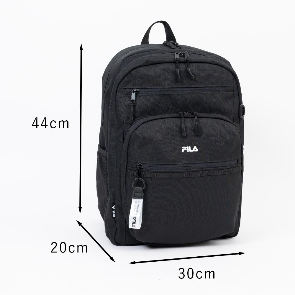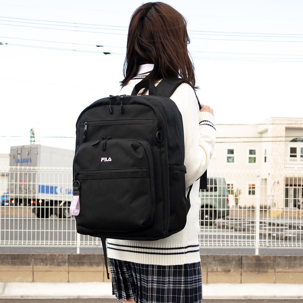 丈夫で撥水加工を施したポリエステル素材を使用し、毎日のスクール使いにぴったり。 収納しやすい多ポケット仕様で、荷物の整理がしやすい機能的なデザインです。 シンプルな見た目にデイジーチェーンをプラスし、トレンド感もしっかり演出しています。 ・背面にシークレットポケット ・サイドに定期入れなどを装着できるDカン付き ・前面ポケット内部にメッシュポケット2つ装備 ・FILAチャーム付き