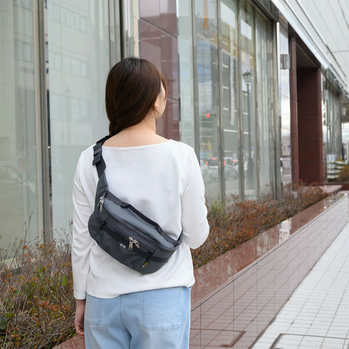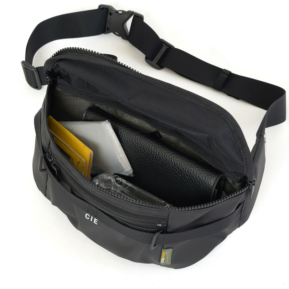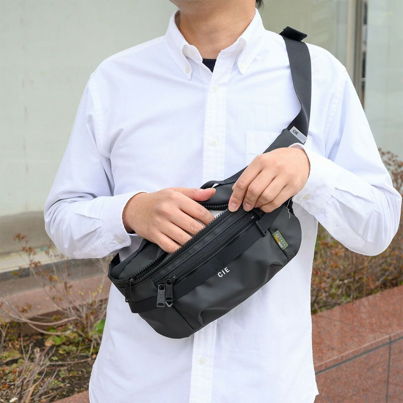 master-piece(マスターピース)やAS2OV(アッソブ)を経たデザイナーが手がける、新しい価値観を提案するブランド「CIE」。 GRID3シリーズは、オリジナルマテリアルCORDURA POLYCARBONATEを使用しており、防水性、撥水性に優れています。 032069は、コンパクトなウエストバッグ。前面ポケットはマチがあり、厚みのある小物も入れやすい仕様です。背面はメッシュ素材を使い、ファスナー付ポケットもあるため、見た目以上の収納力があります。