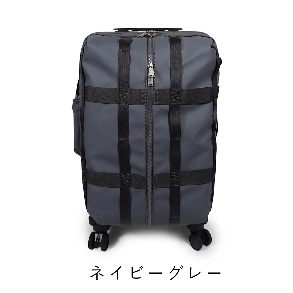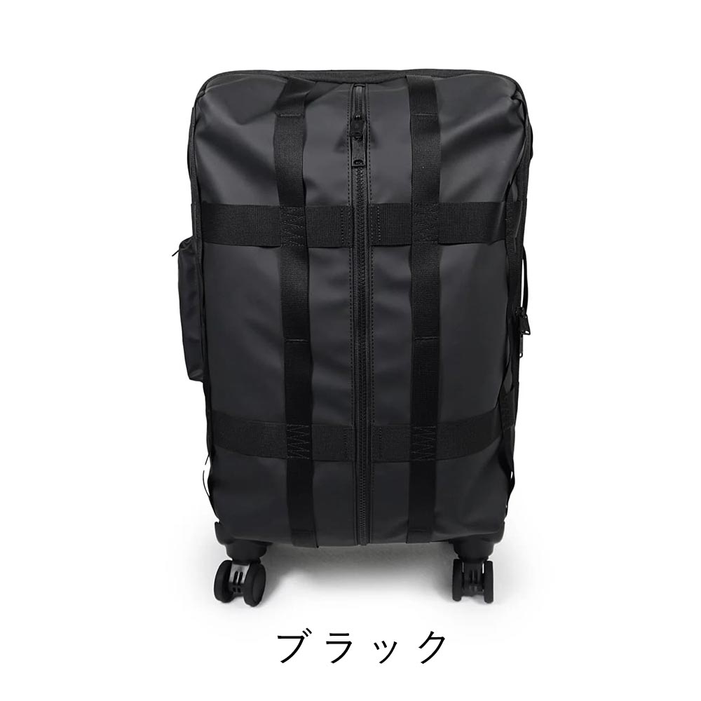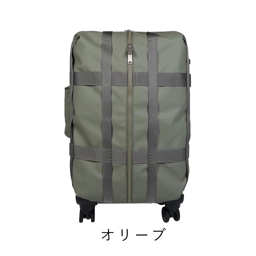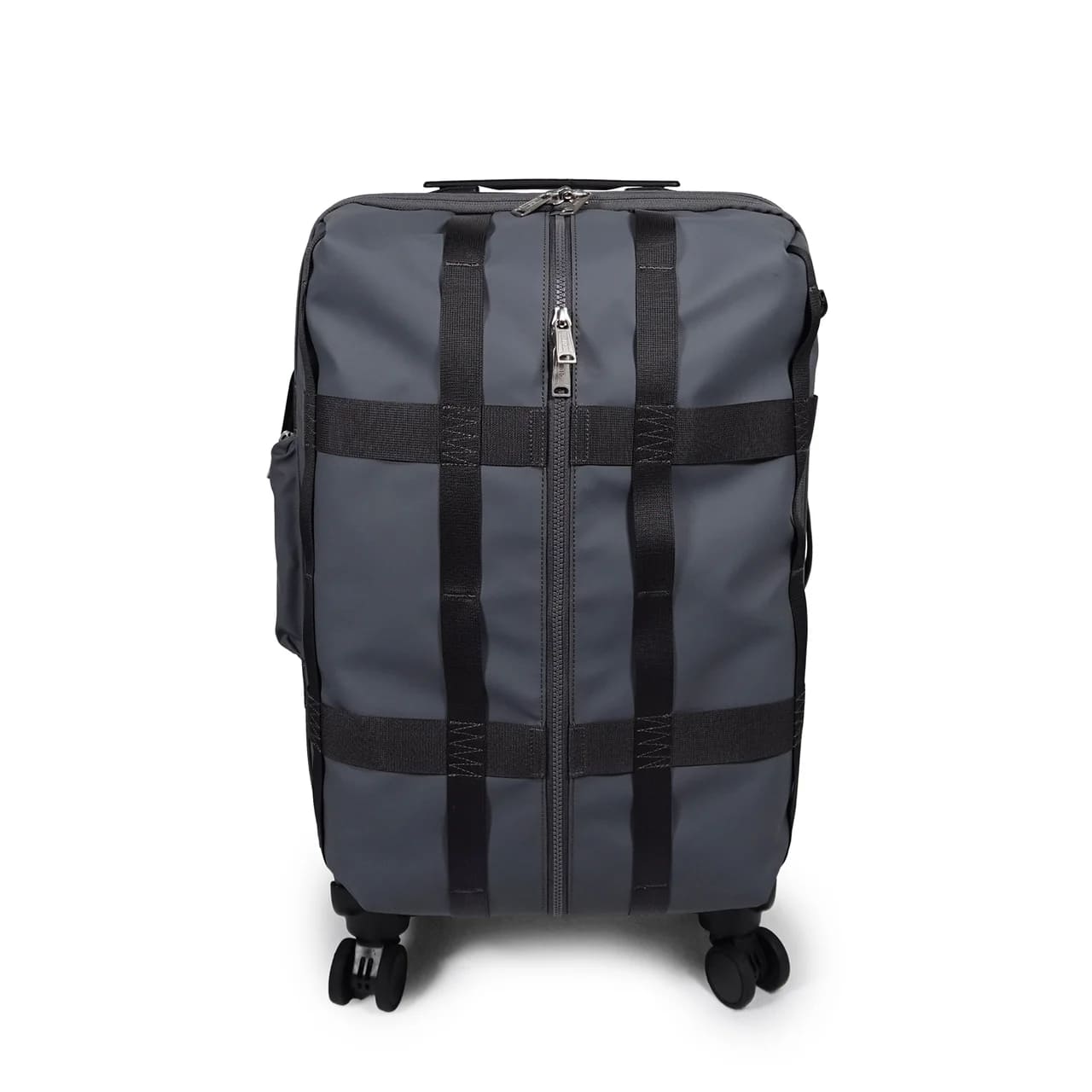 キャスターは軽やかで静音性、耐久性に優れ滑らかな走行が特徴のHINOMOTO社製のキャスターを採用。俊敏な機動性で優れた走行を可能にします。また左右側面にはZIPポケットに加え、両方向から本体を引き寄せる為のナイロンテープ持ち手を配しております。本体メイン開口部はU字に大きく開き、視認性の高い仕様となっております。前層はセンターZIPポケットのフリー層となり、メイン開口を開けることができないタイトな場所でも物を出し入れすることが可能です。