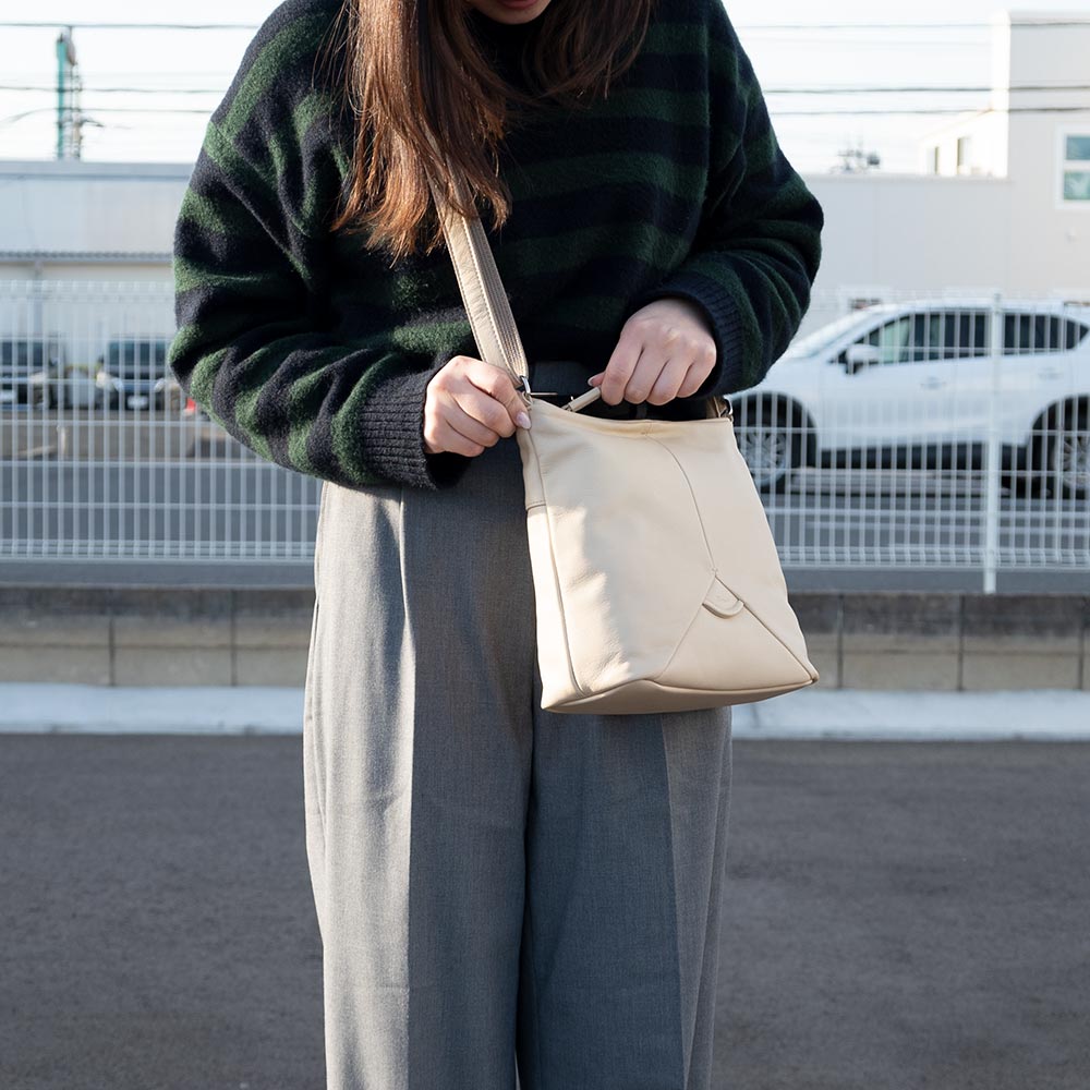 ソフトなタッチ感と軽量化にこだわった、デイリーに使えるレザーバッグ スタンダードなデザインと機能性で、デイリーからトラベルまで活躍してくれる万能ショルダーバッグ。大きすぎないサイズ感で、500mlペットボトルやお財布をぴったり収納できます。
