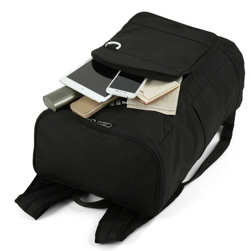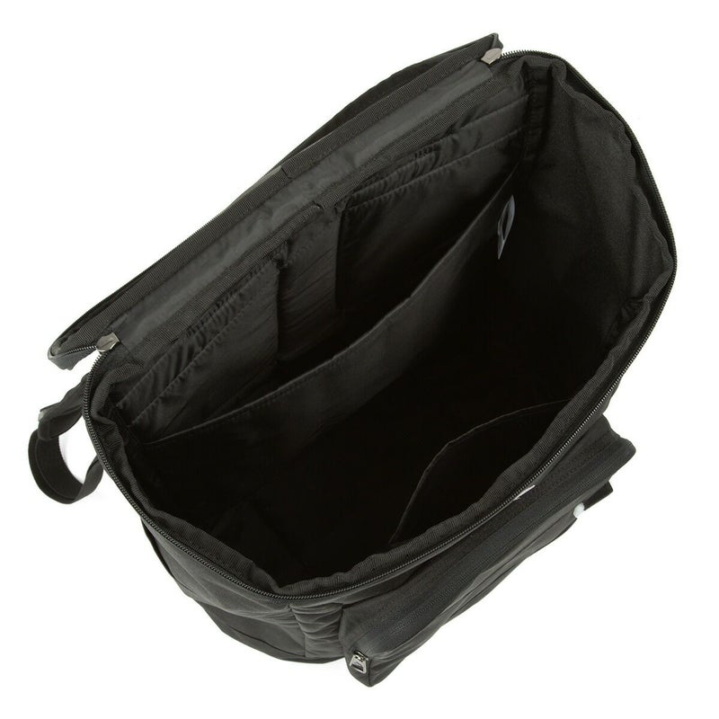 前面にはファスナーポケット、側面には500mlペットボトルを収納できるオープンポケット、メインルームにはPCポケットを搭載。内部のPCポケットは15.6インチPCを収納可能です。