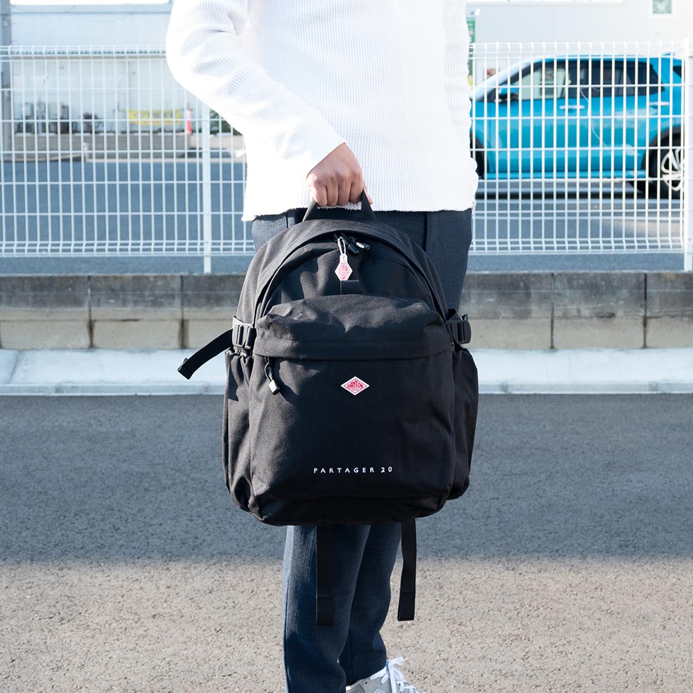 Cordura Canvas Daypack〈PARTAGER 20〉 ・500デニールのコーデュラナイロンを使用したデイパック ・軽さと強度を兼ね備えたデイリーユースに最適な生地 ・随所のファスナーにブランドオリジナルの引手を採用 ・本体はダブルファスナー開閉、内部に芯材入り背面ポケット ・両サイドに深さのあるポケットを配備 ・前面にはしっかりと容量を確保したファスナー開閉のマチ付きアウトポケット ・アウトポケット上部にベルクロ開閉の隠しポケット