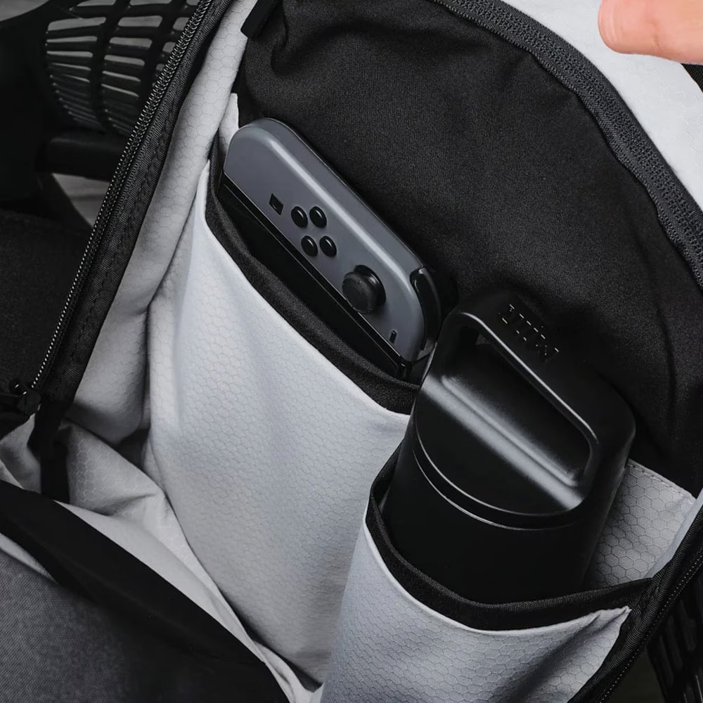 ・メインコンパートメントにウォーターボトルやペンケースなどを収納するのに便利なポケット。