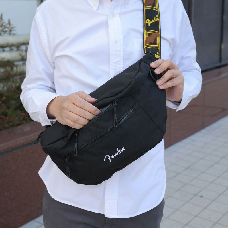 エレクトリックギターの代名詞ともいえるギターメーカー“FENDER(フェンダー)”のウエストポーチ。日常的に持ち歩く荷物に加え、ペットボトルやポーチも収まるビッグサイズ◎フェンダーのモノグラムストラップを忠実に再現した、ヴィンテージテイストなデザインのショルダーベルトが目を惹くアイテム。デイリー使いはもちろん、休日のお出掛けやショッピング、アウトドアや旅行時のサブバッグなど幅広く活躍してくれます。程良くシンプルなので、フェンダーファンのみならず、多くの方に使いやすいウエストポーチです。