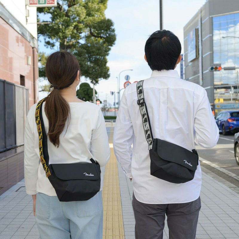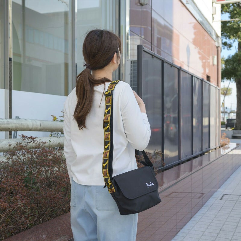 フェンダーのモノグラムストラップを忠実に再現した、ヴィンテージテイストなデザインのショルダーストラップが目を惹くアイテム。コンパクトな見た目ながらも、日常的に持ち歩く荷物に加え、ミニボトルもしっかり収まる収納力。バッグ内外にポケットを配置しているので、細かいアイテムも整頓して持ち運びが可能。