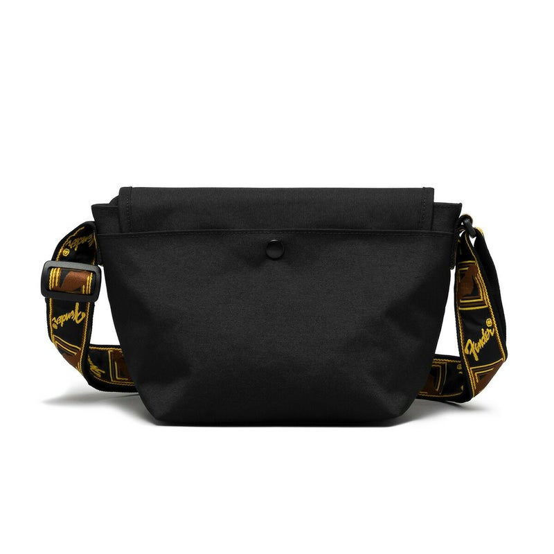エレクトリックギターの代名詞ともいえるギターメーカー“FENDER(フェンダー)”のフラップショルダーバッグ。 フェンダーのモノグラムストラップを忠実に再現した、ヴィンテージテイストなデザインのショルダーストラップが目を惹くアイテム。コンパクトな見た目ながらも、日常的に持ち歩く荷物に加え、ミニボトルもしっかり収まる収納力◎バッグ内外にポケットを配置しているので、細かいアイテムも整頓して持ち運びが可能。 デイリー使いはもちろん、休日のお出掛けやショッピング、アウトドアや旅行時のサブバッグなど幅広く活躍してくれます。程良くシンプルなので、フェンダーファンのみならず、多くの方に使いやすいミニバッグです。