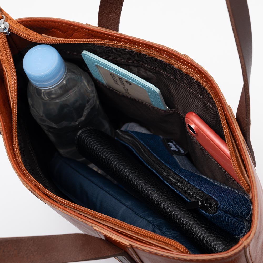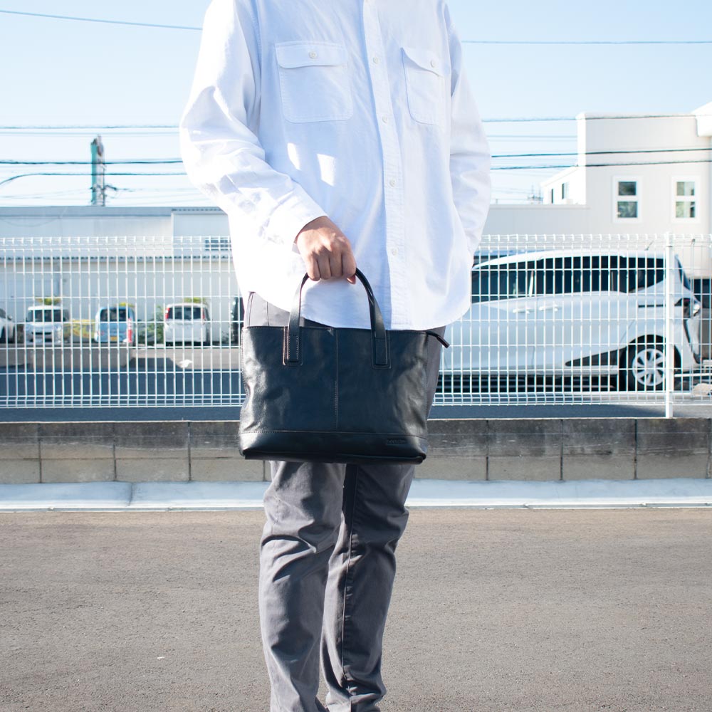 手揉みでシボ加工を施した牛革を使用した、高級感のあるミニトートバッグです。透明コバ仕上げとヌメ革ハンドルが上品さと存在感をプラス。B5対応のドライビングトートで、お出かけの必需品をスマートに収納でき、プライベートからビジネスまで幅広く活躍します。