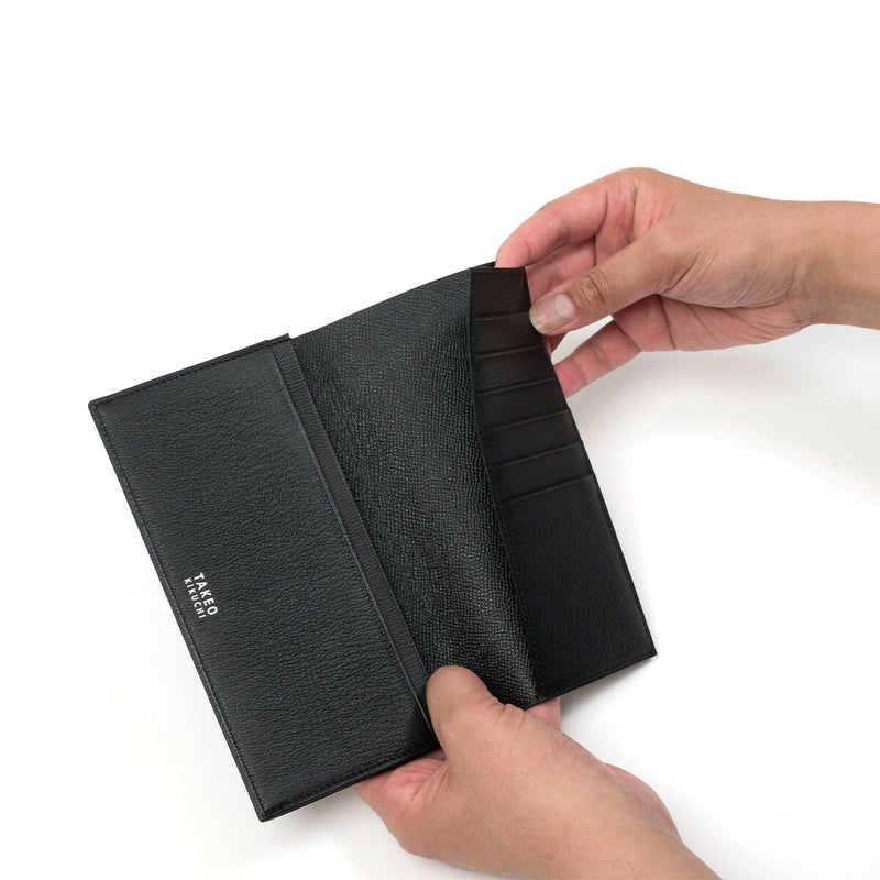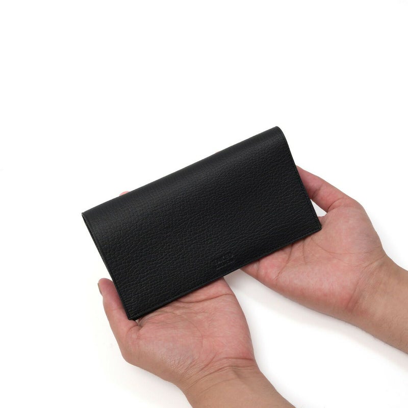 手作業によって一枚一枚時間をかけて8方向から手揉みを施した山羊革を使用。繊維層がほぐれ革全体がふっくらとふくらみ、機械では表現できない質感へと変化します。革本来のしなやかさを保ち、丈夫ながら薄い仕上がりに。手揉みにより繊維がほぐれた素材はタッチ感も優しくほとんど革だけで仕立てられている構造のため、手になじみ滑らかな使用感が生まれます。