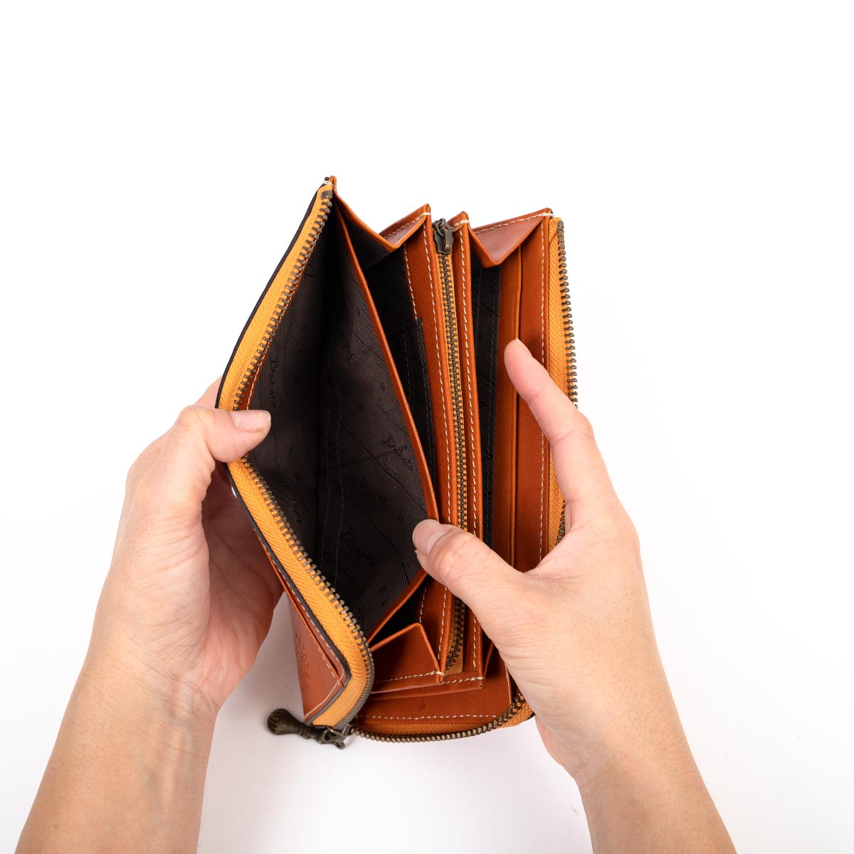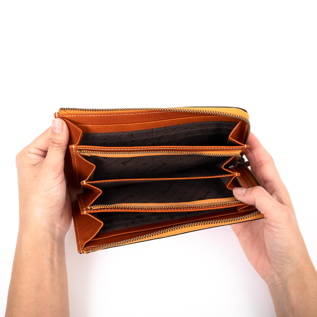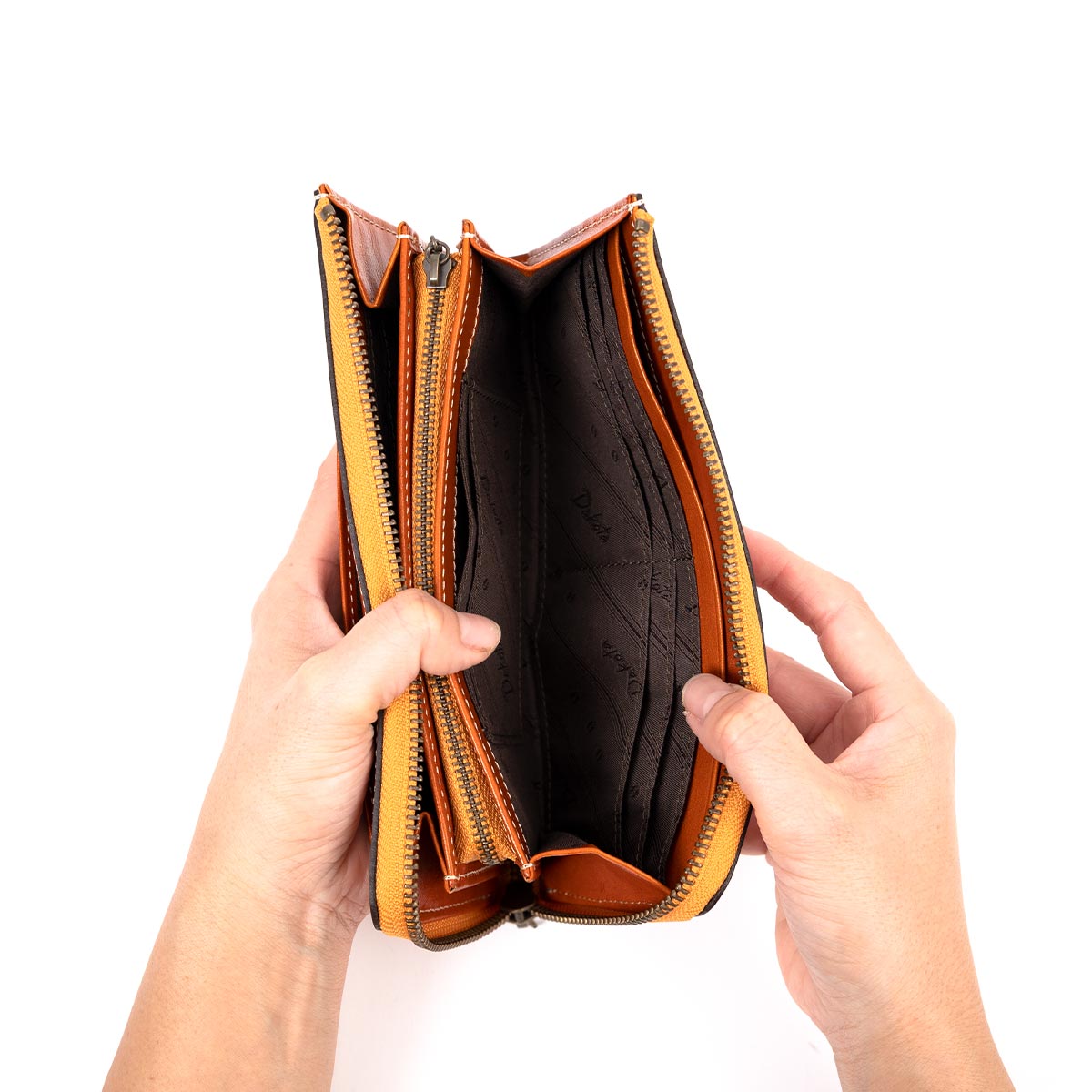 馬蹄の素押しをあしらった、イタリアンレザーの魅力溢れるシリーズ。 イタリアンレザーによく映えるステッチワークと馬蹄の素押しをさりげなくあしらい、シンプルなデザインに仕立てました。革の風合いや手触りを楽しみながら、使っているうちに増していく艶や味わい深くなっていく色味などエイジングをじっくりと味わうことができます。 マチ付きタイプのL字ファスナー長財布。前面には、オープンポケットが付いているので、レシートやクーポンなどすぐに出し入れしたいアイテムの収納にも便利です。お札入れスペースは2つ、カードは合計16枚入れることができます。