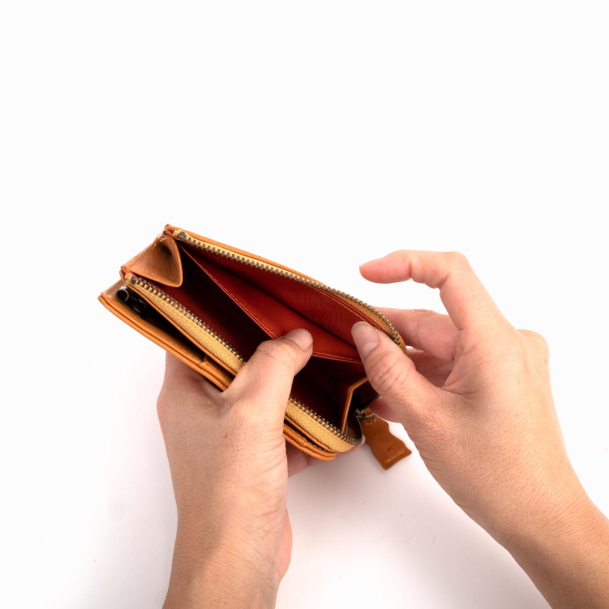 ナチュラルな革の風合いが楽しめる素上げの革に、様々な動物をパズル柄にし型押ししました。引き手にはパズルピースのハムスター型にするなど遊び心をちりばめました。使い込むほどに革の経年変化も味わえ、より一層味わい深い表情へと変化していくのも魅力的です。
