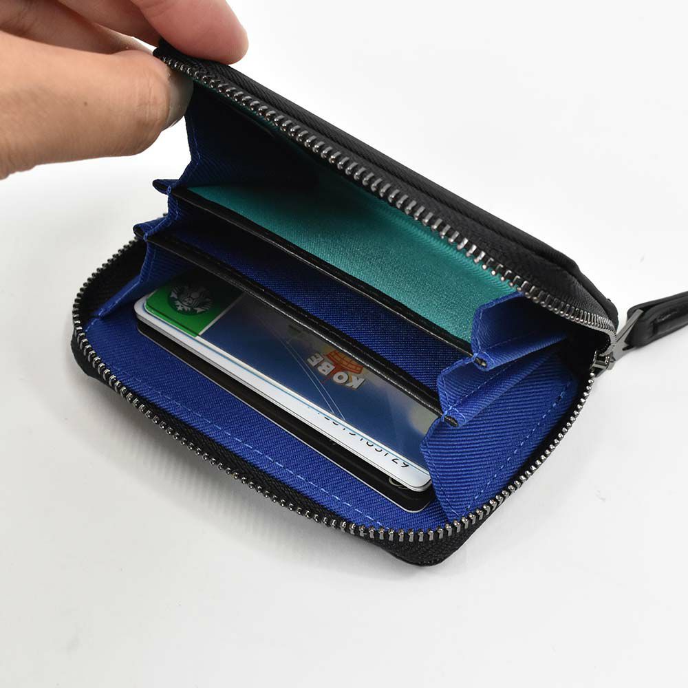 内部は仕切りで3部屋に分かれており、それぞれカード、小銭、三つ折りの紙幣などと仕分けして使用できます。また、背面にはICカード等を入れるポケットも付いており、これ1つで外出できる機能的コインケースです。