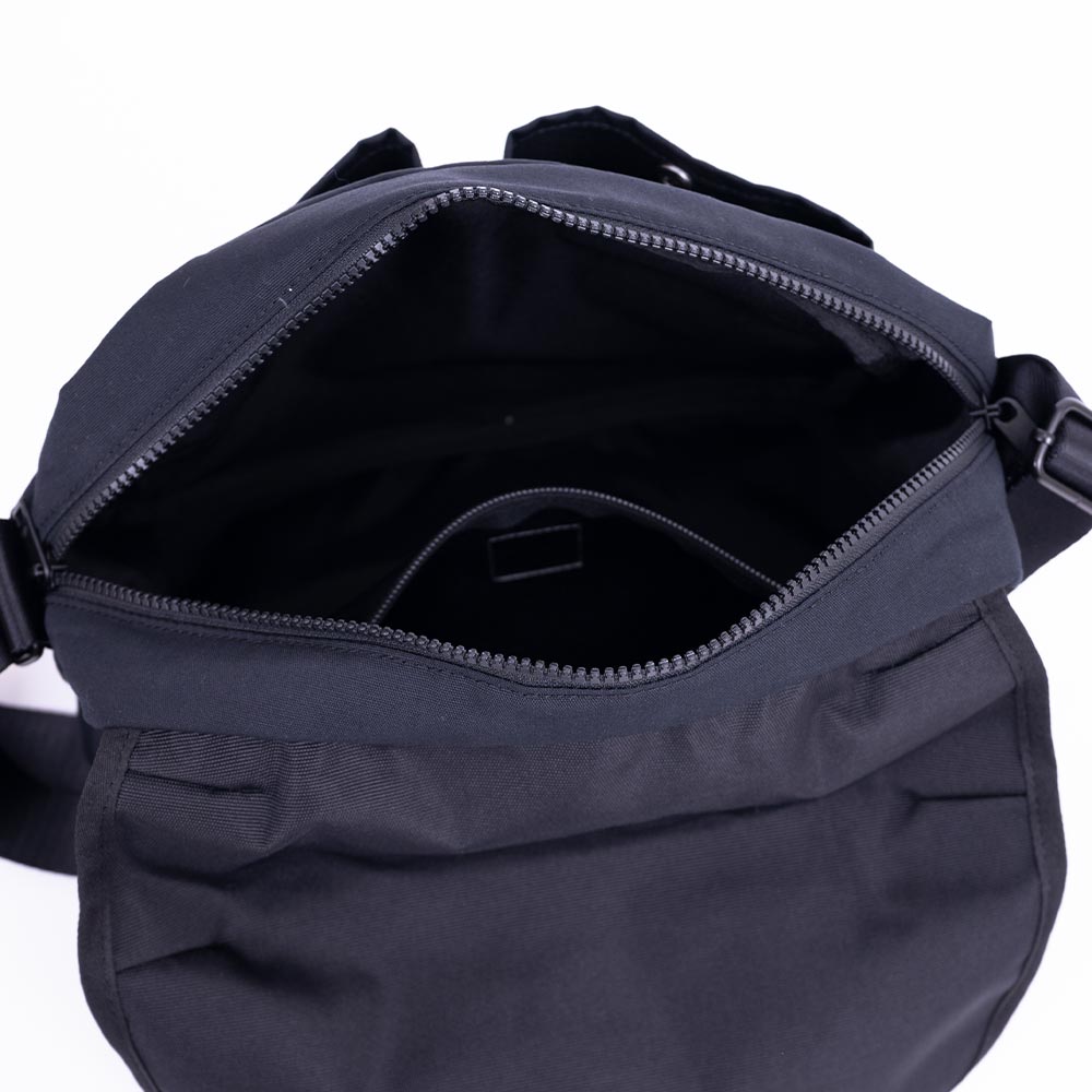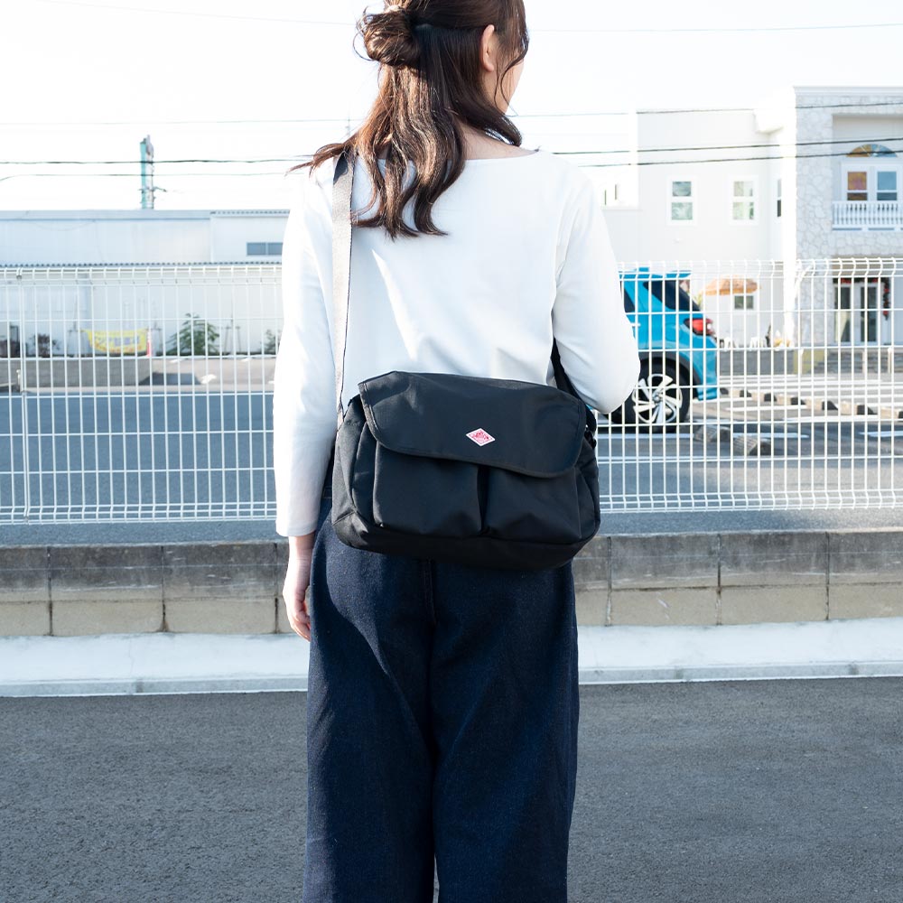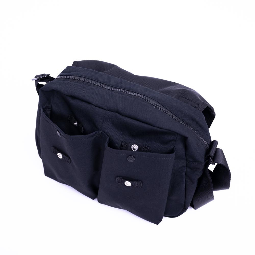 Canvas Shoulder Bag〈OBERKAMPF〉 ・コロンとした丸みのあるフォルムが特徴のショルダーバッグ ・キャンバスでありながらポリエステルの軽さを備えた生地 ・ブランドネームの刻印が入ったリベットやドット釦を採用 ・前面に2つの大きなプリーツポケットを配置 ・内ポケットあり