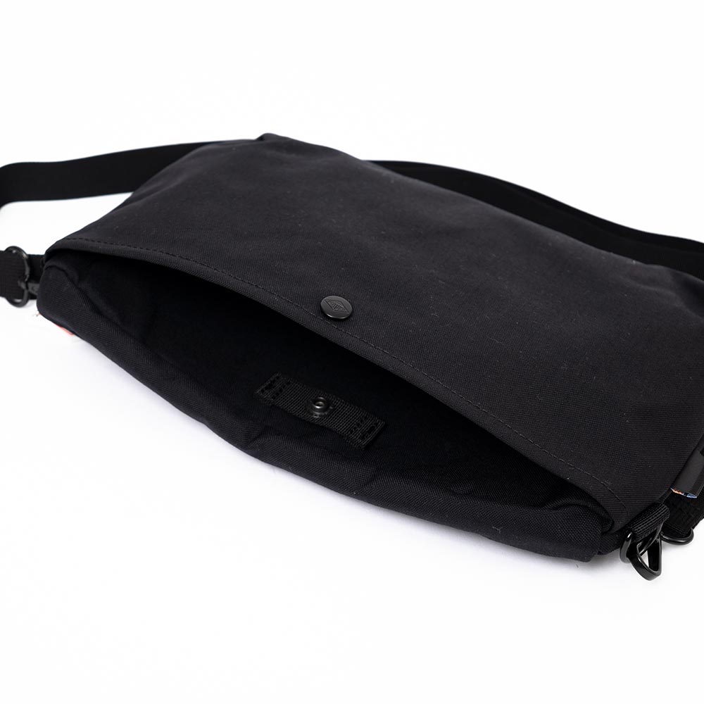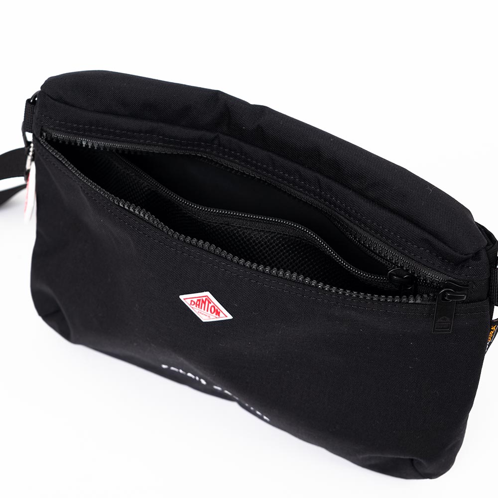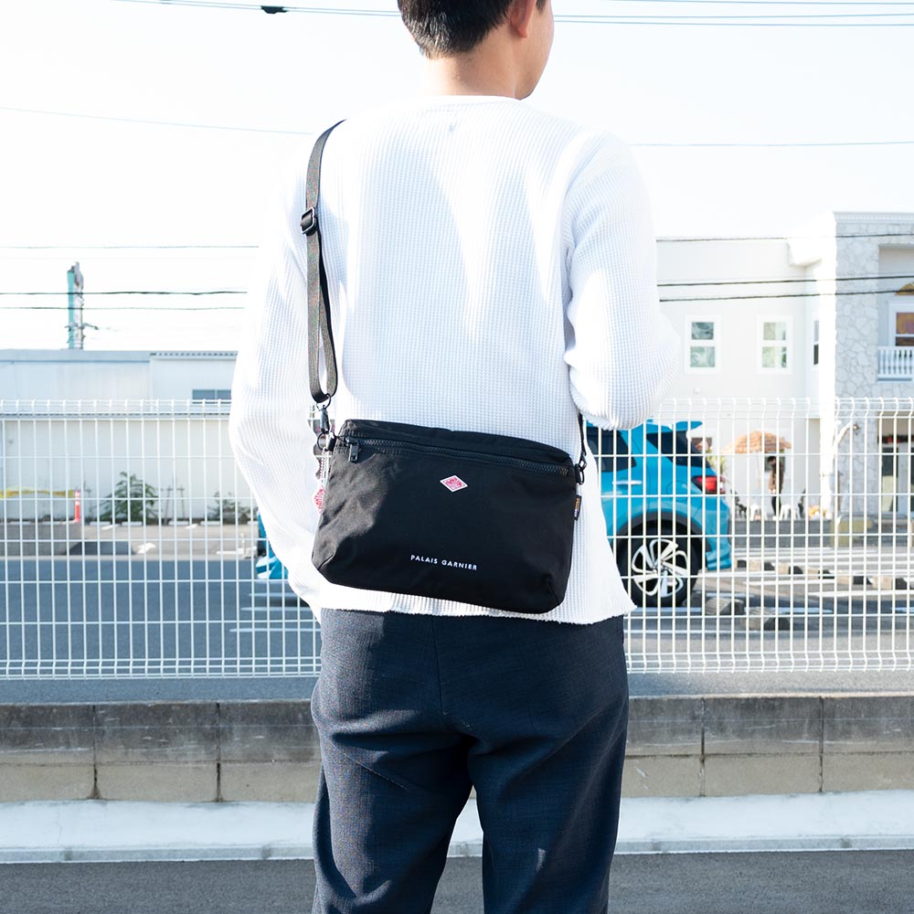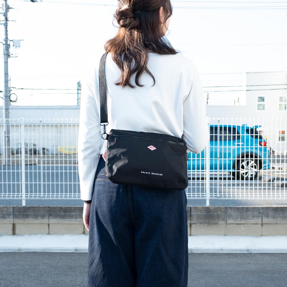 Cordura Canvas Shoulder Pouch〈PALAIS GARNIER〉 ・500デニールのコーデュラナイロンを使用したサコッシュ ・軽さと強度を兼ね備えたデイリーユースに最適な生地 ・体に沿うような平面的でシンプルなデザイン ・背面にドットボタン付きポケット、内側にファスナー付きメッシュポケットを配備