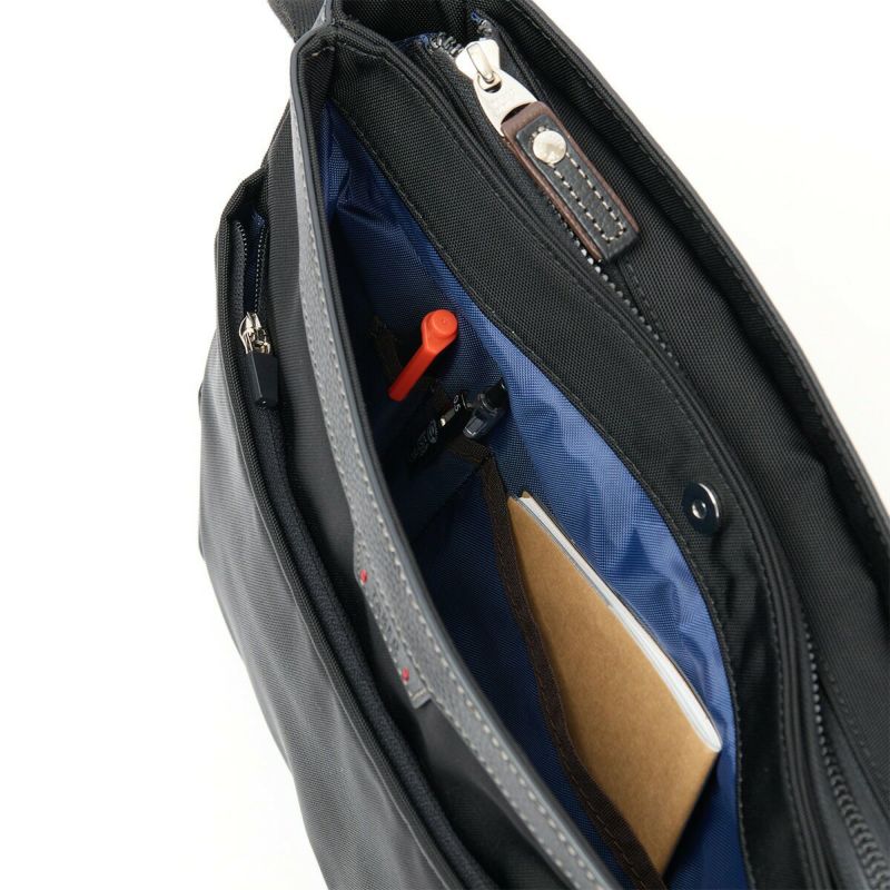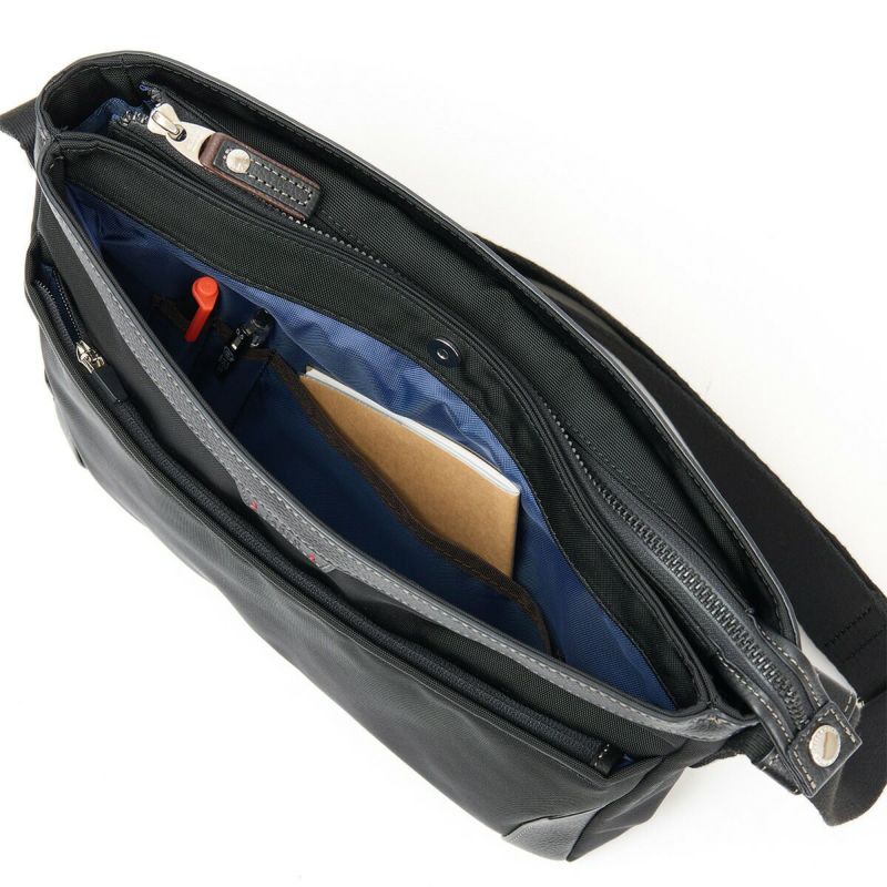 本体生地に、強撚・高密度・Teflon加工を施したナイロンを使用し、付属にはSCOTCHGARDの防水加工を施したシュリンクシボ(エンボス)牛革を使用します。 どちらも水に強い素材を使うことで天候に左右されにくい、ON・OFFどちらでもお使いいただけるショルダーバッグです。