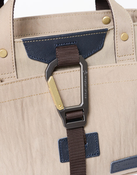 またブラック×ゴールドのオリジナルカラビナが程よいアクセントとなり、シックな佇まいに個性を添えています。