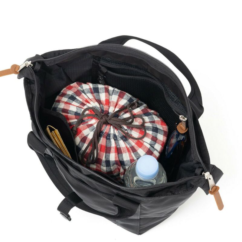 トラディショナルなトートバッグのデザインのボートトート(BOAT TOTE)は取り外し式のショルダーベルトが付属し、気分に合わせてトートバッグとして、またはショルダーバッグとして使用することが出来ます。口が大きく開くデザインによりバッグの中身が一目瞭然で、マチを大きく取った本体内部にはポケットも備えているので整理しやすさは抜群です。