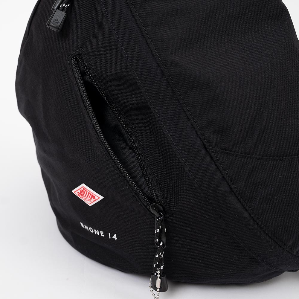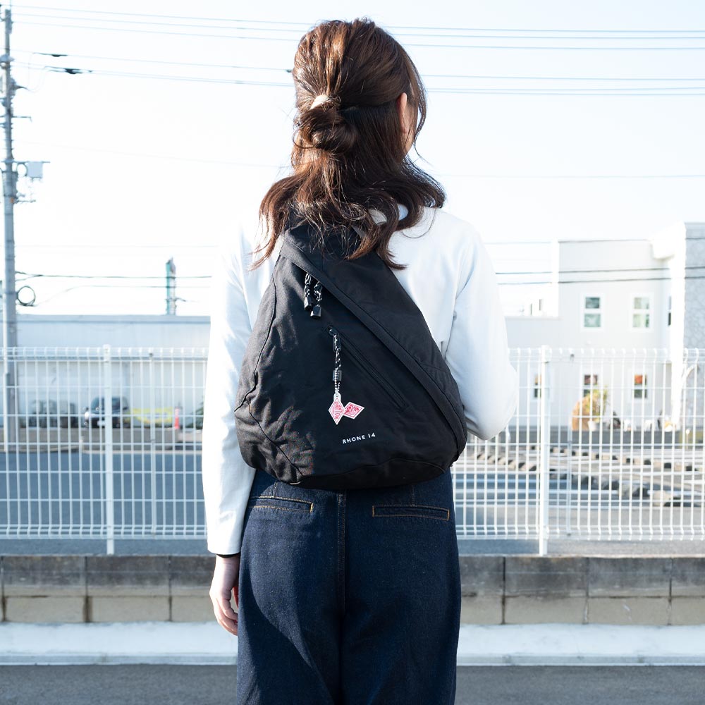 Cordura Canvas One Shoulder Bag〈RHONE 14〉 ・500デニールのコーデュラナイロンを使用したワンショルダーバッグ ・軽い素材感とコーデュラの強度を擁したデイリーユースに最適な生地 ・コンパクトながらマチを広く取り14Lの容量を確保 ・ストラップにコインポケット、内側にファスナー付きメッシュポケットを配備