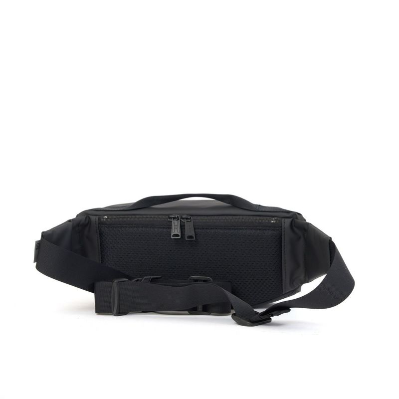 master-piece(マスターピース)やAS2OV(アッソブ)を経たデザイナーが手がける、新しい価値観を提案するブランド「CIE」。 GRID3シリーズは、オリジナルマテリアルCORDURA POLYCARBONATEを使用しており、防水性、撥水性に優れています。 032069は、コンパクトなウエストバッグ。前面ポケットはマチがあり、厚みのある小物も入れやすい仕様です。背面はメッシュ素材を使い、ファスナー付ポケットもあるため、見た目以上の収納力があります。