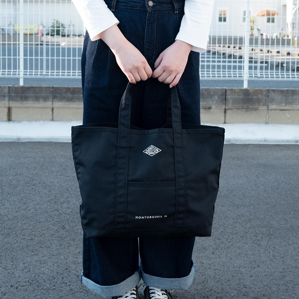 Canvas Marche Bag〈MONTORGUEIL〉 ・DANTONロゴ刺繍をフロントに施したマルシェバッグ ・キャンバスでありながらポリエステルの軽さを備えた生地 ・発色の良さが特徴 ・柔らかい素材のため折り畳んで持ち運び可能 ・内ポケットなし
