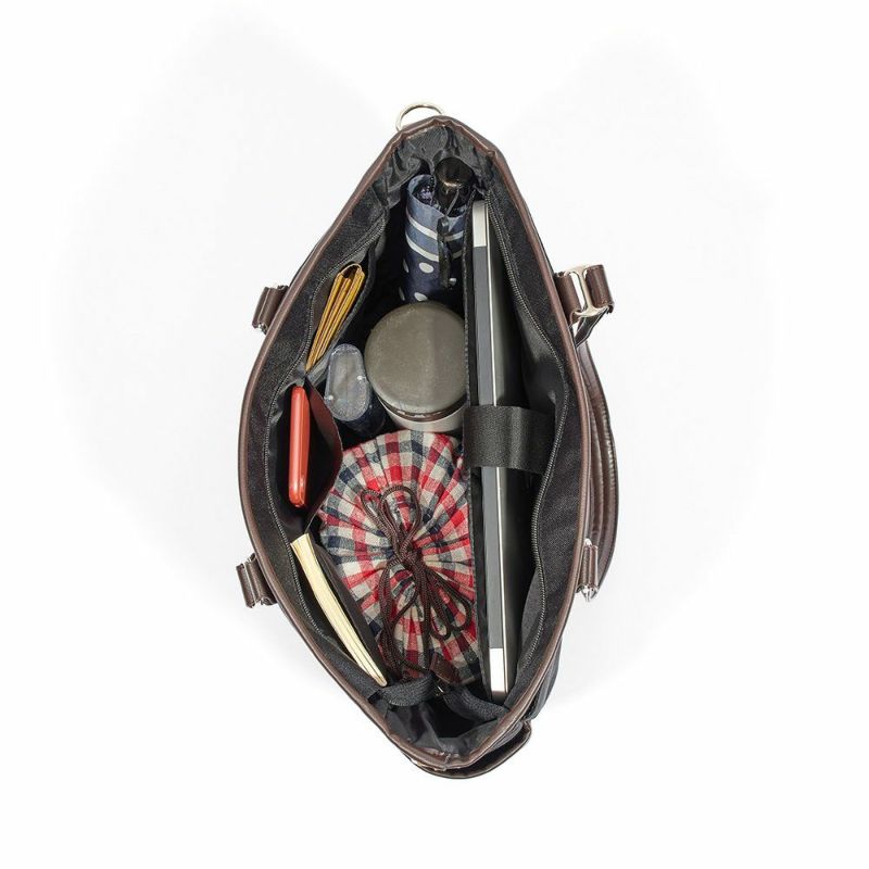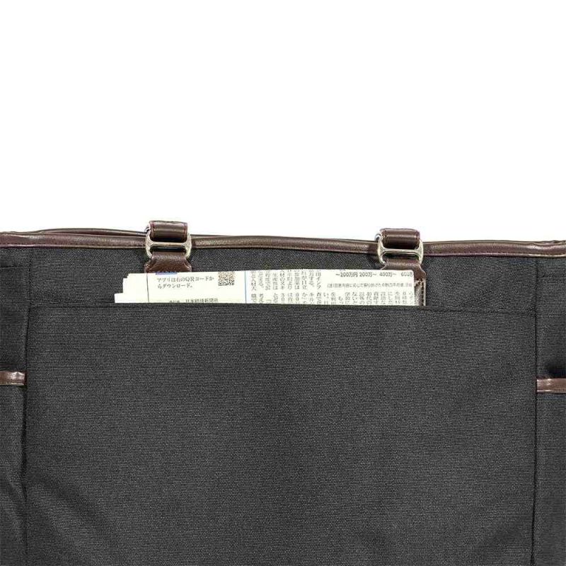 A4ファイルが余裕を持って収納できる大きめのトートバッグ。外側・内側ともに多数のポケットがあるため、小物の整理もしやすい仕様になっています。