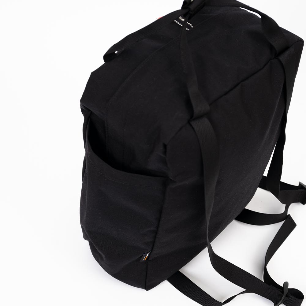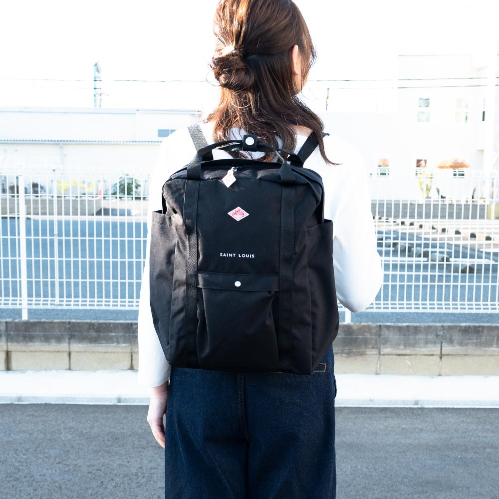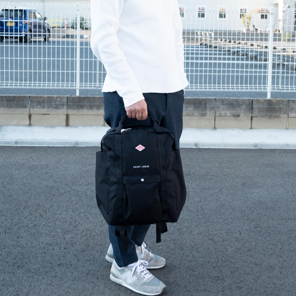 Cordura Canvas Square Rucksack〈SAINT LOUIS〉 ・500デニールのコーデュラナイロンを使用した定番スクエアリュック ・軽さと強度を兼ね備えたデイリーユースに最適な生地 ・開口部はダブルジップファスナーを採用 ・タンブラーや折り畳み傘などが収納しやすい縦長の両サイドポケット ・フロントにドットボタン開閉のポケット