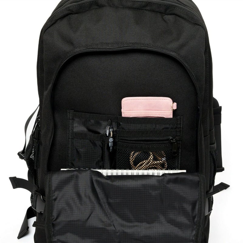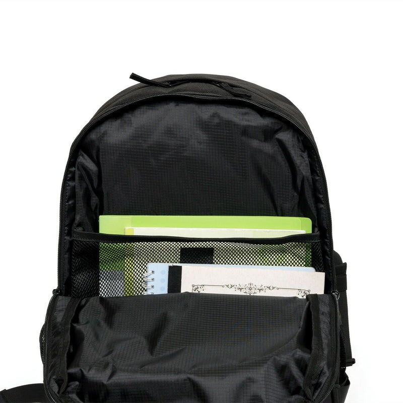 メッシュポケットが目をひく、ストリートライクなコードつきデイパック。 約31L入る収納力も魅力的です。生地には撥水加工も施されています。