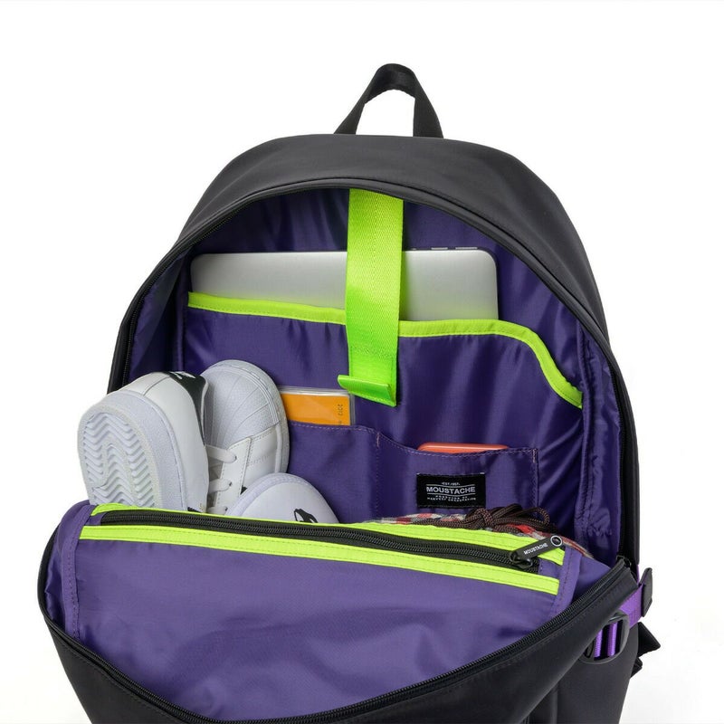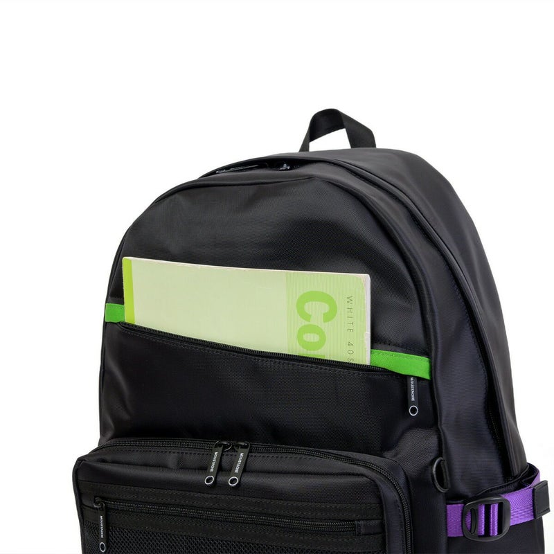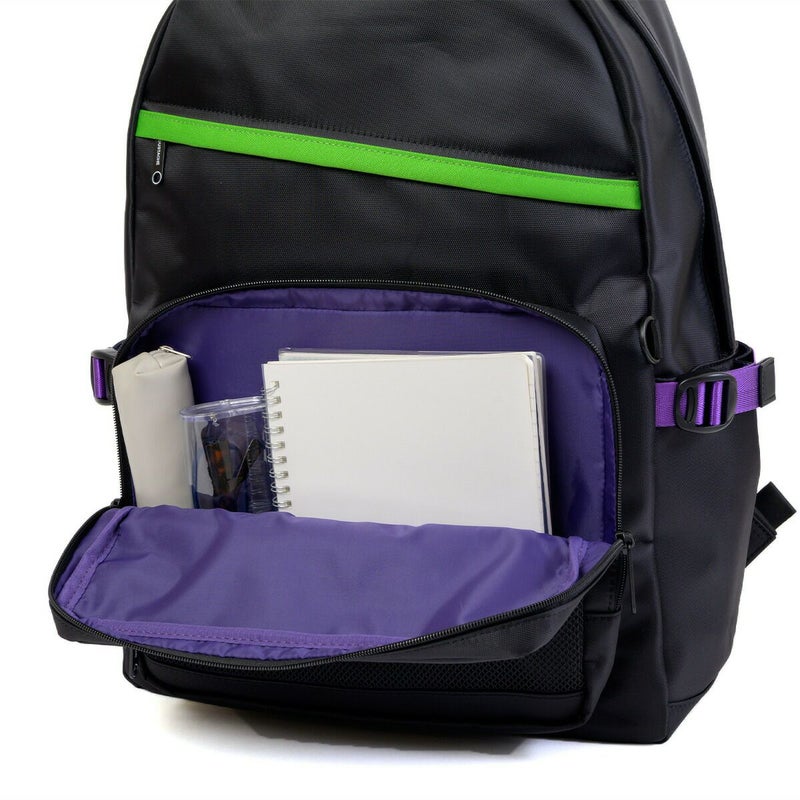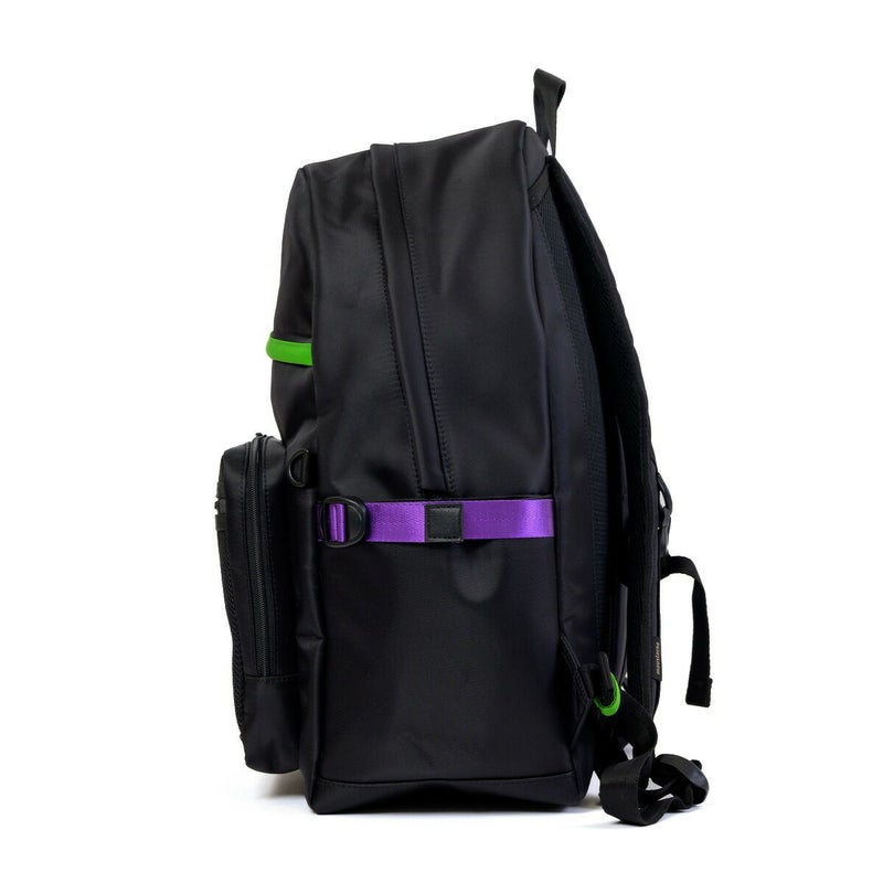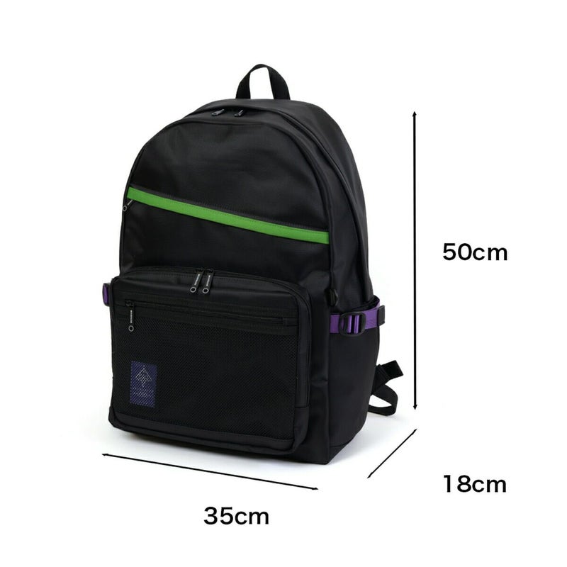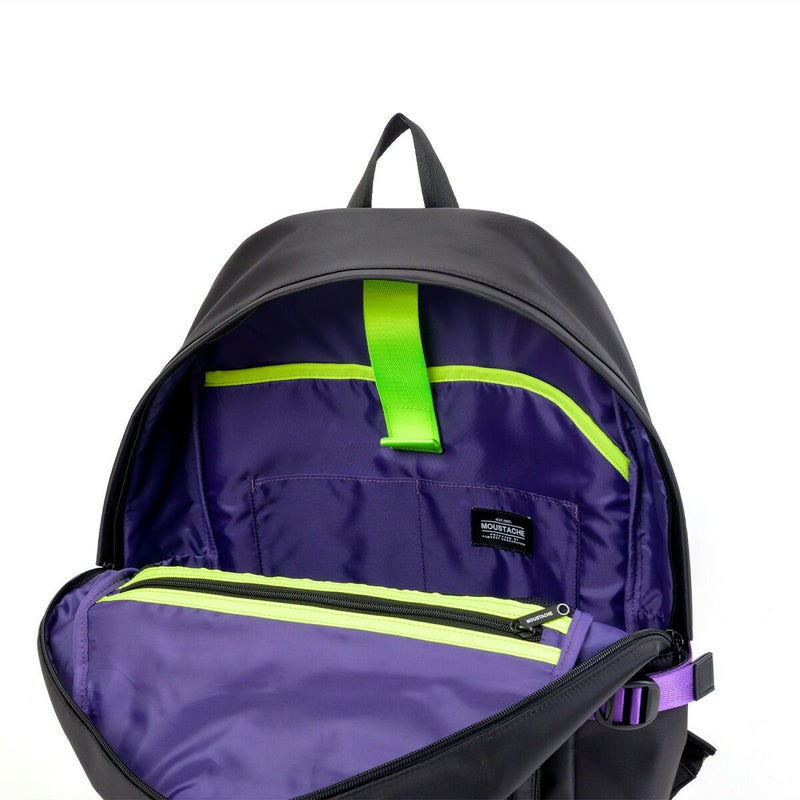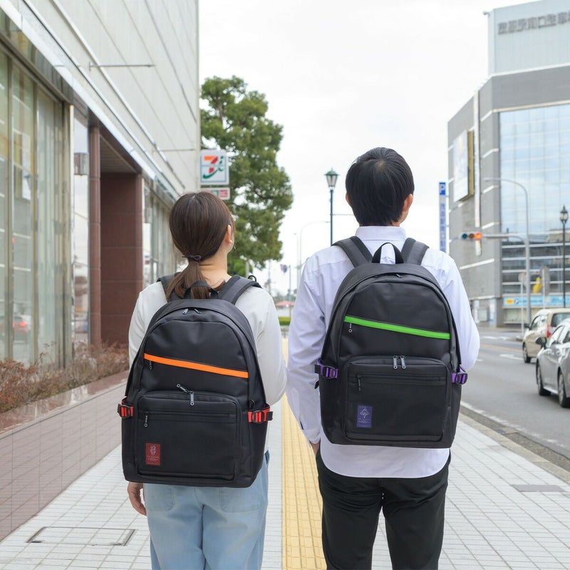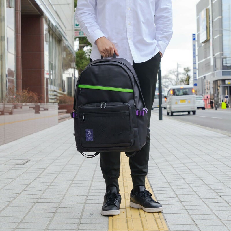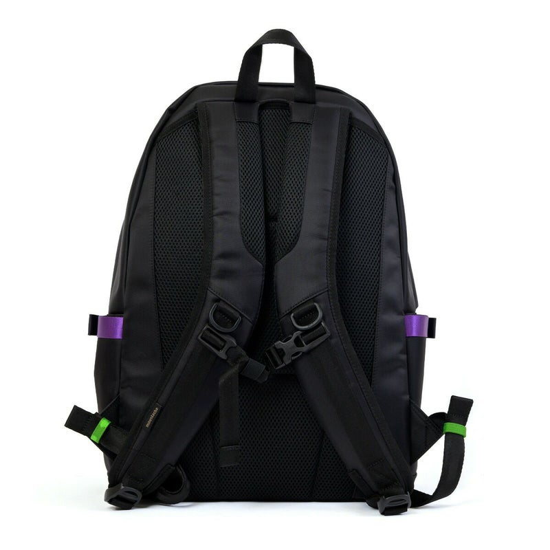 ◆エヴァンゲリオンとmoustacheのコラボアイテム第2弾が登場!通勤通学に使いやすいブラックカラーをベースに初号機・2号機・0号機のカラーリングを散りばめたデザインのデイパックです。