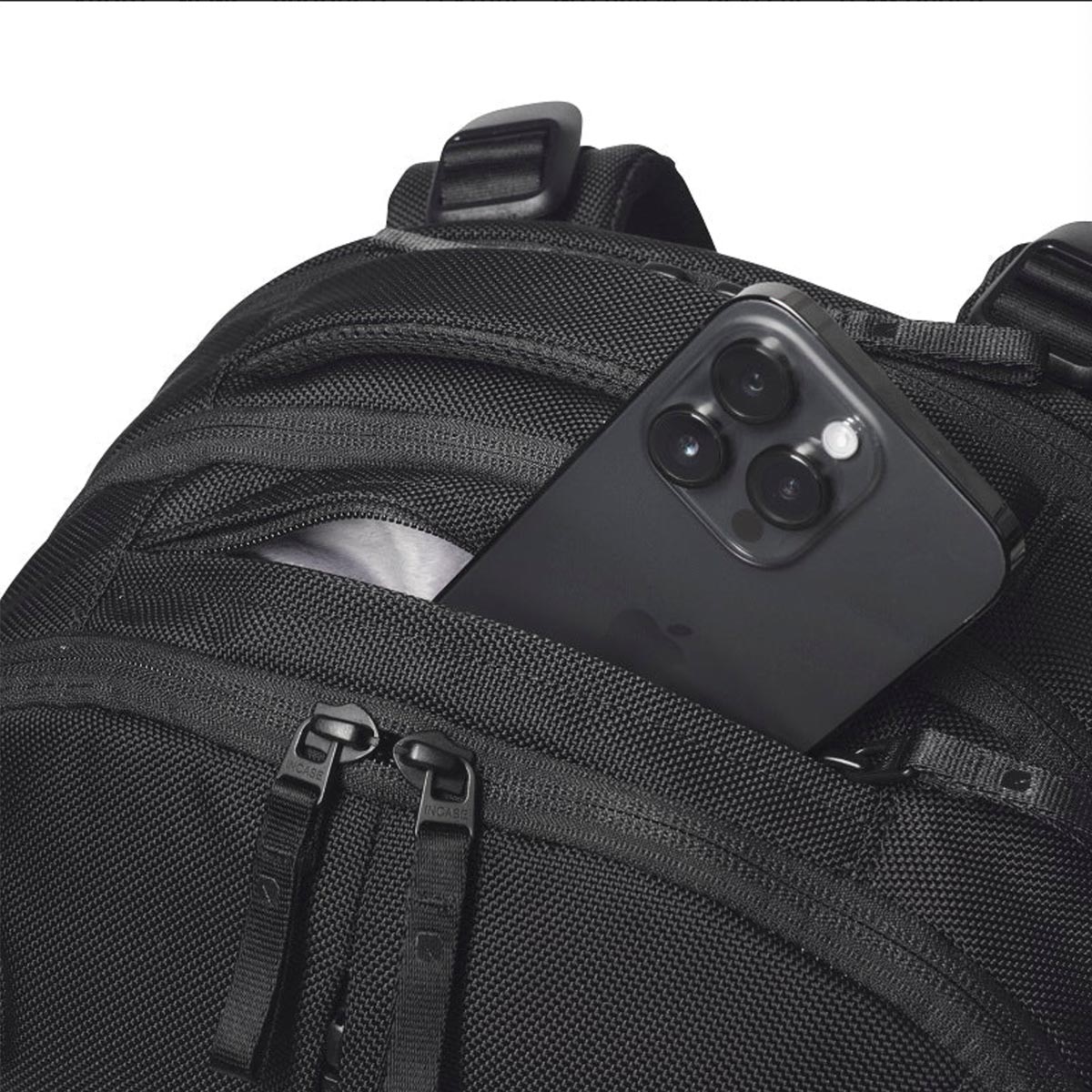 インビスタ社が誇るヘビーデューティなコーデュラバリスティックナイロンを採用。ブランド史上最多クラスのポケット数を実現した、さまざまな用途に対応するためのバックパック