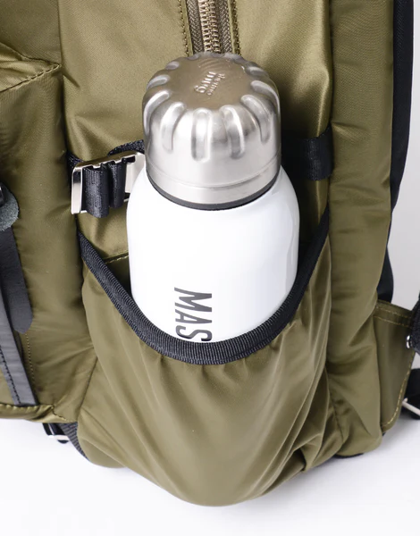 ・水筒などの収納に便利なストレッチ式のオープンポケットが左右に備えられています。