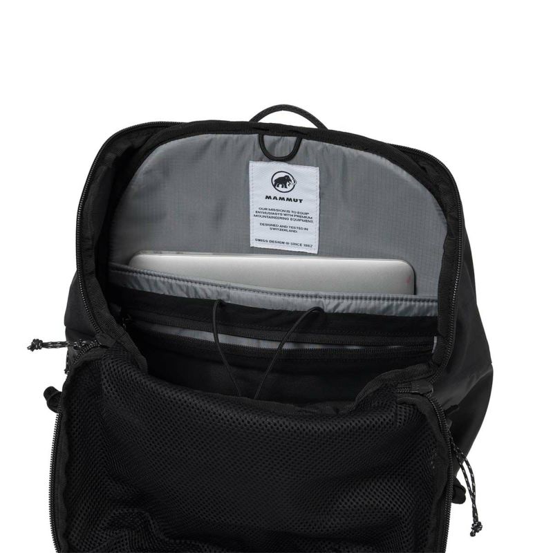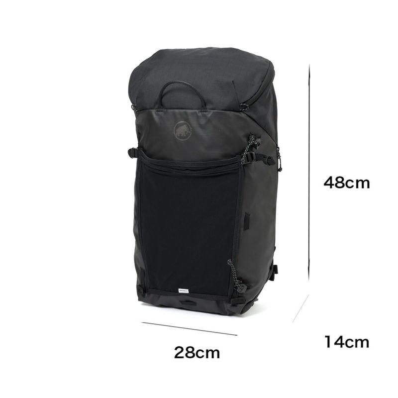 ラウンドファスナー式のワイドな開口部が荷物をしっかり保護。頼りになる容量。 ラウンドファスナー式のワイドな開口部により、上からの物の出し入れがしやすい仕様に。さらに、サイドのファスナーから奥のアイテムにもアクセス可能。MAMMUT最高性能を誇るギアへのオマージュを込めた、通勤や日帰りハイキングなど幅広いシーンに対応するバックパックです。