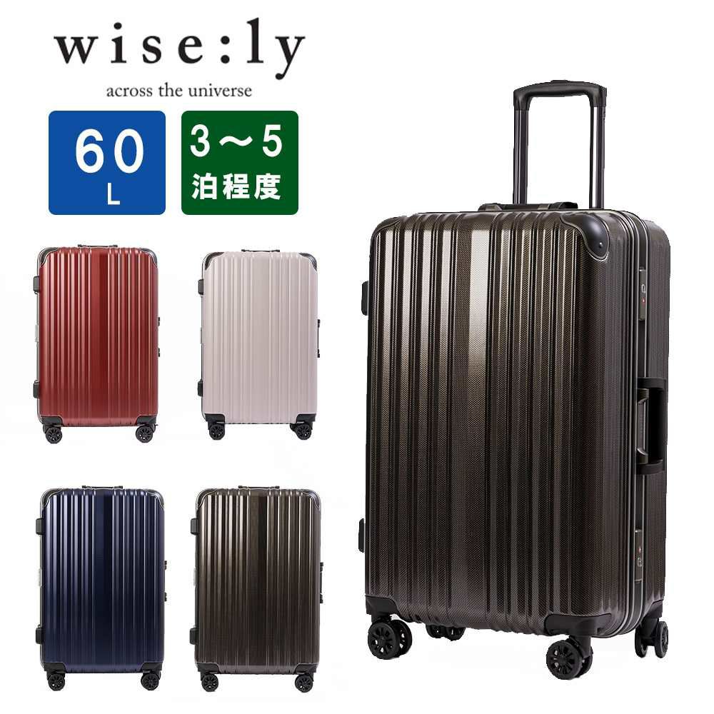 送料無料 13時まで当日出荷 スーツケース フレーム 60L 3泊 4泊 5泊 Mサイズ wise:ly ワイズリー 大容量 キャリーケース メンズ レディース フレームタイプ キャリーバッグ 旅行 TSAロック 頑丈 丈夫 338-2081